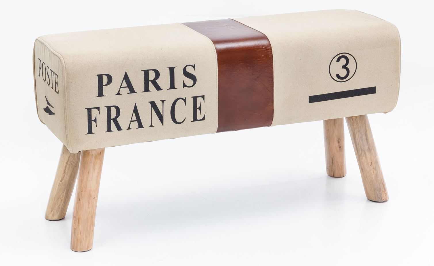 Połącz elegancję i wytrzymałość z tą sportową, retro ławką Turnbock. Powierzchnia siedzenia to beżowe płótno (83% bawełny) i brązowa naturalna skóra (17% kozia skóra), oferujące komfort i unikatowy styl. Cztery solidne nogi z drewna eukaliptusowego zapewniają stabilność i trwałość.