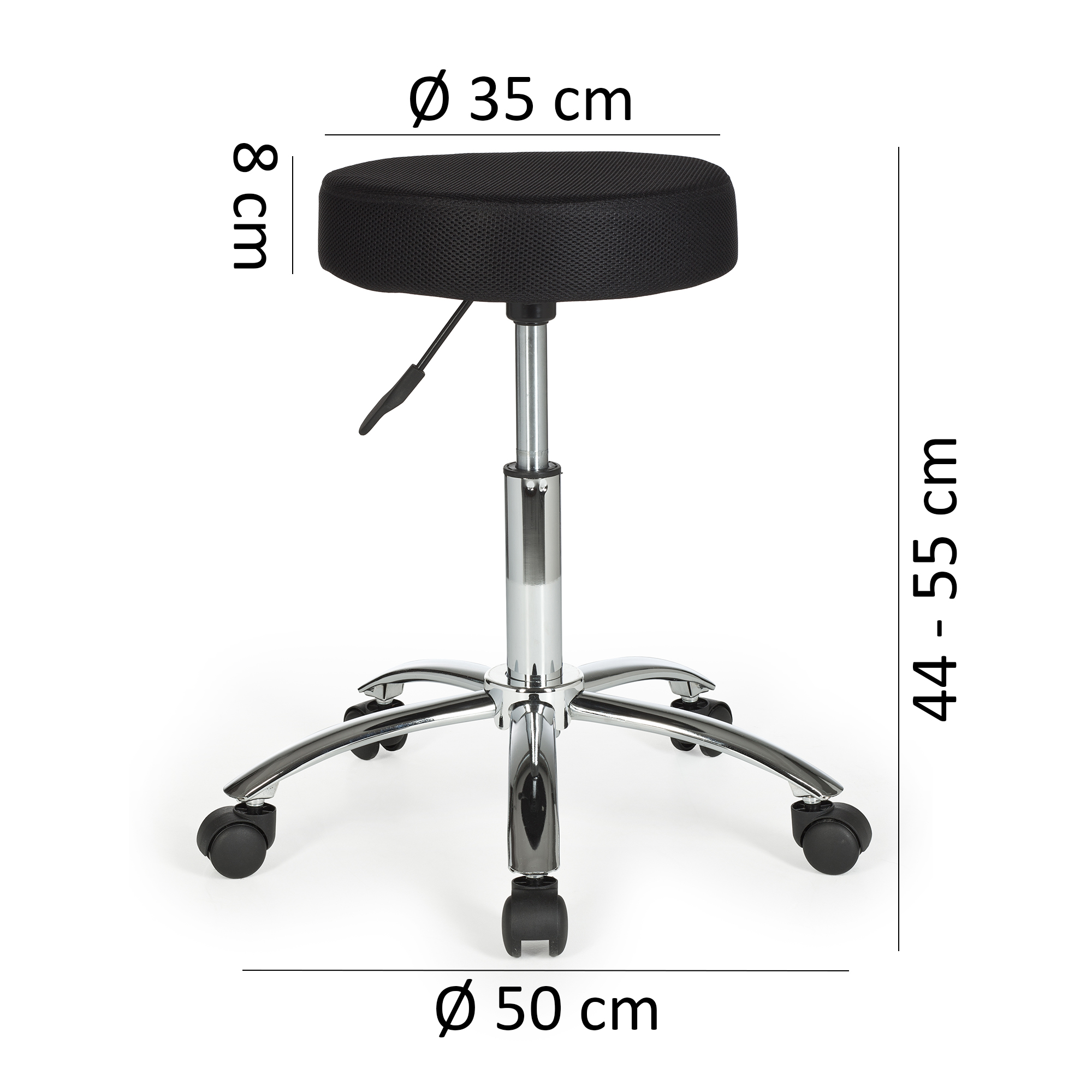 - Średnica siedziska: 35,5 cm; wysokość tapicerowanego siedziska 8,5 cm