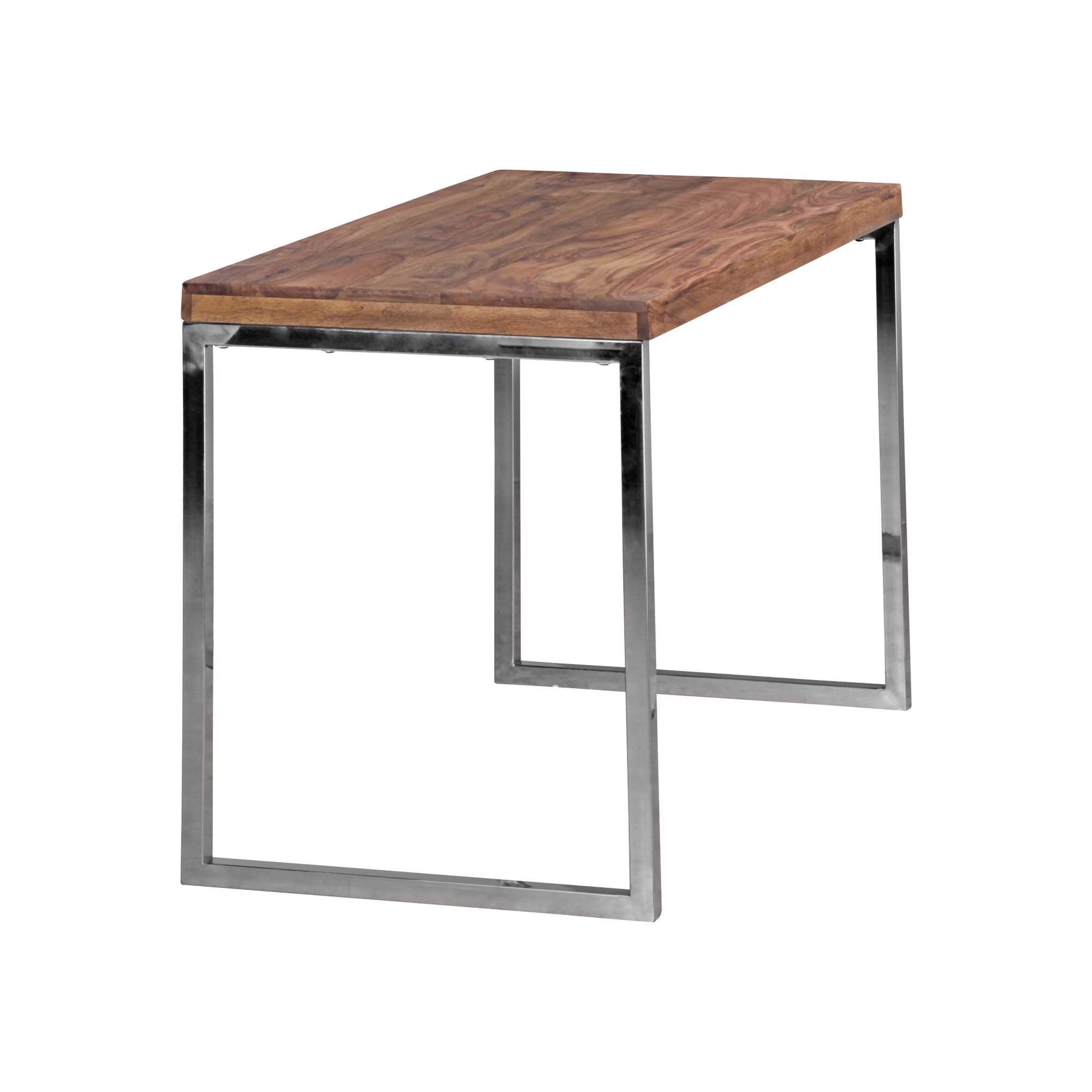 Biurko GUNA wykonane z litego drewna Sheesham łączy elegancję i wytrzymałość, stworzone do komfortowej pracy. Powierzchnia wykonana z naturalnego drewna z przezroczystym lakierem oraz chromowane metalowe nogi tworzą ciepły, nowoczesny kontrast. Styl rustykalny nadaje funkcjonalną i wygodną przestrzeń.