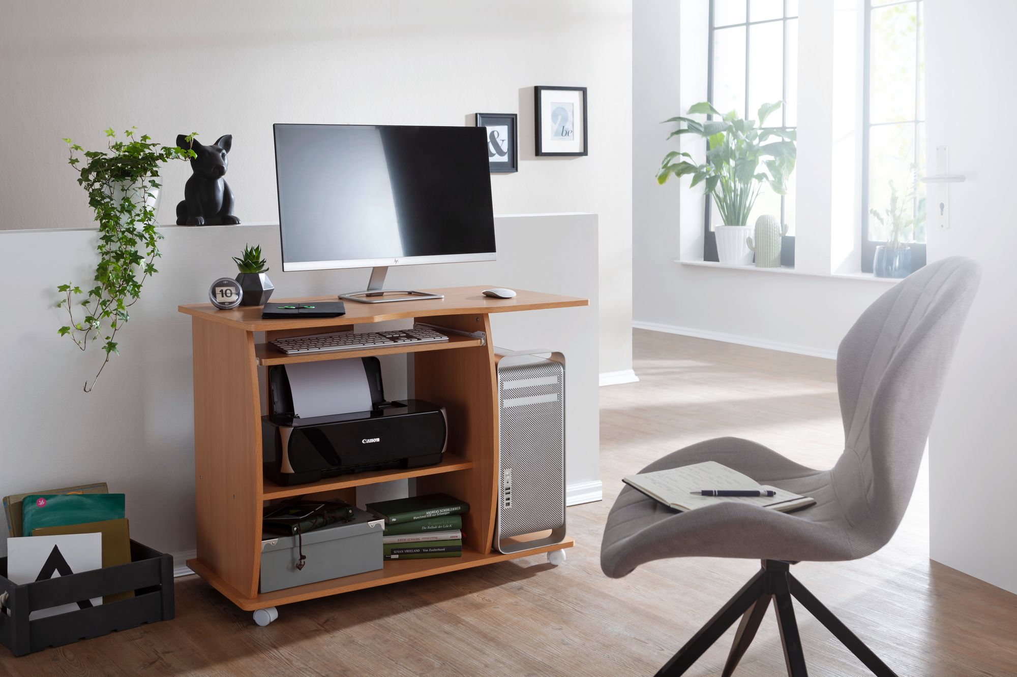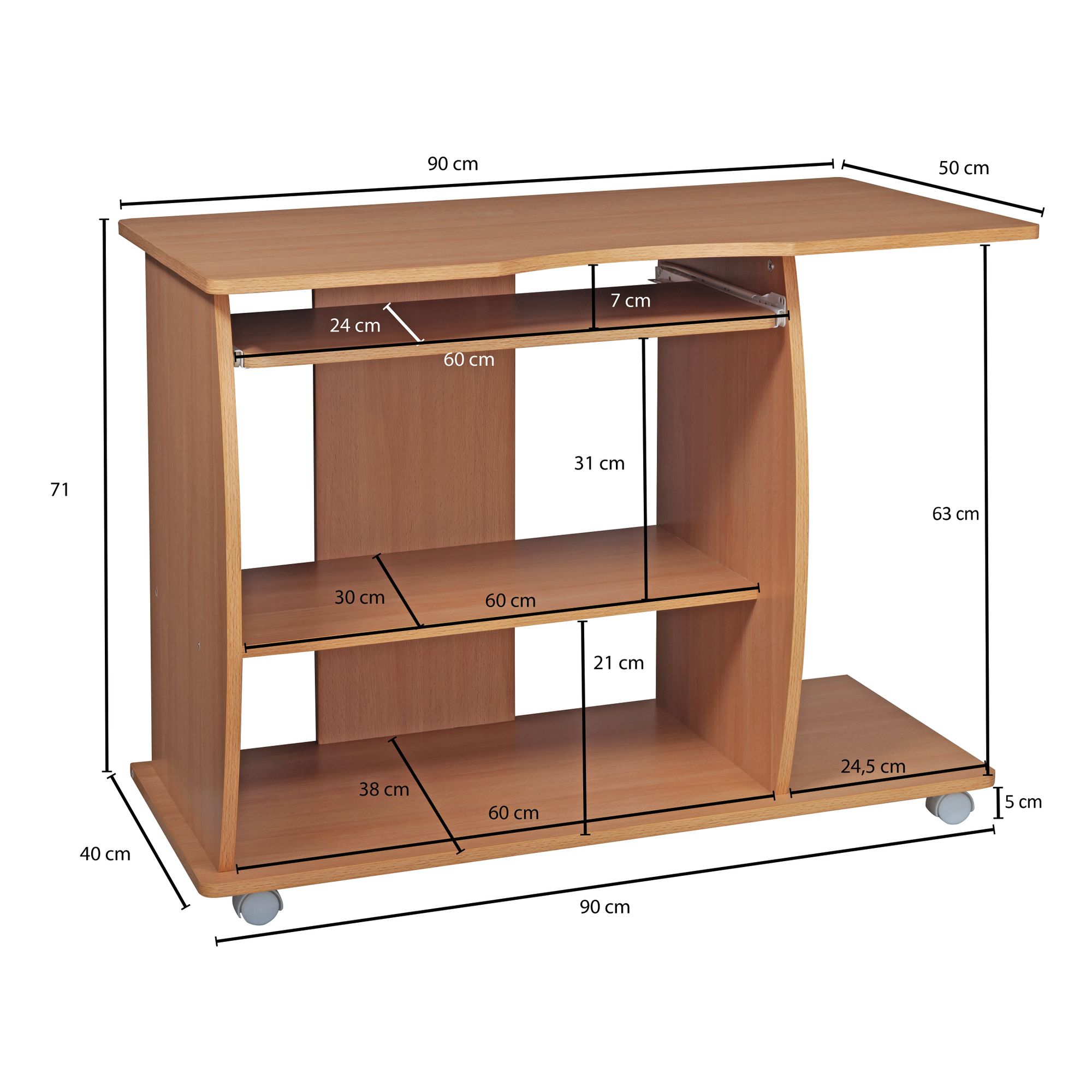 Informacje dot. produktu "Biurko komputerowe GRASSE buk 90 x 71 x 50 cm | Z wysuwaną klawiaturą i blokowanymi kółkami"