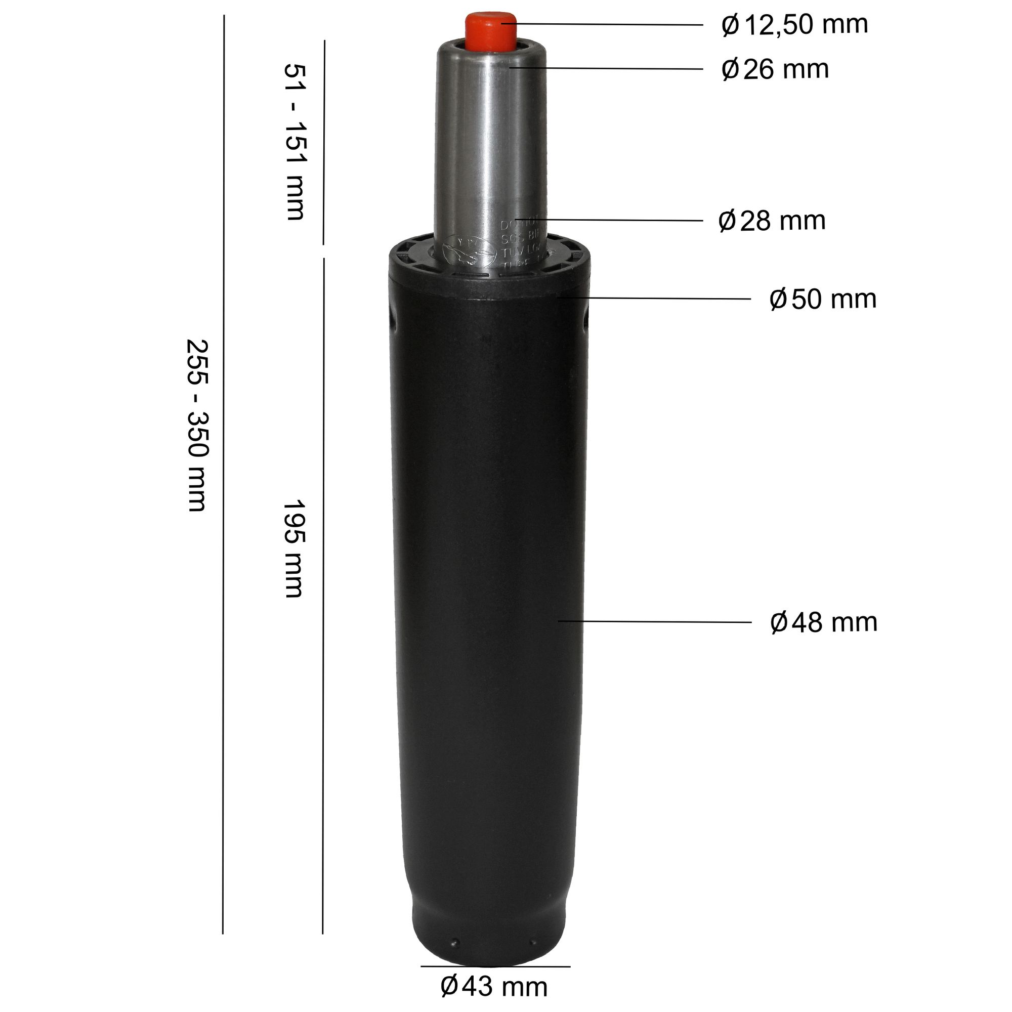 Informacje dot. produktu "Siłownik gazowy do fotela biurowego | Chrom | 195 mm x 50 mm"