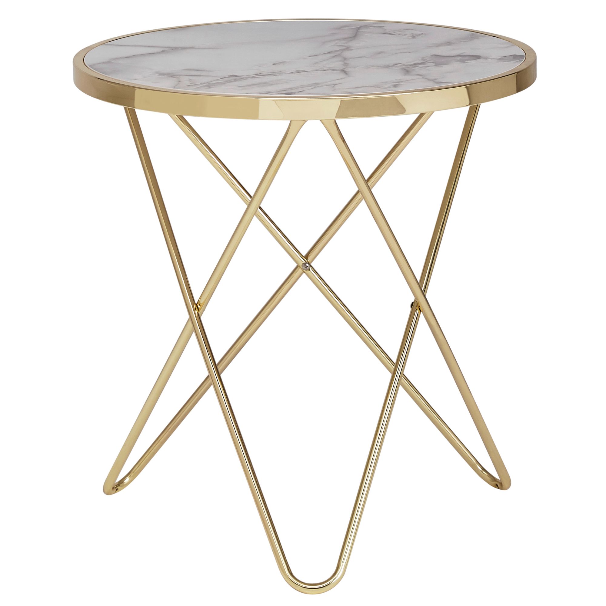 Informacje dot. produktu "Design biały stolik boczny efekt marmur | Złota metalowa rama | Ø 55 cm"