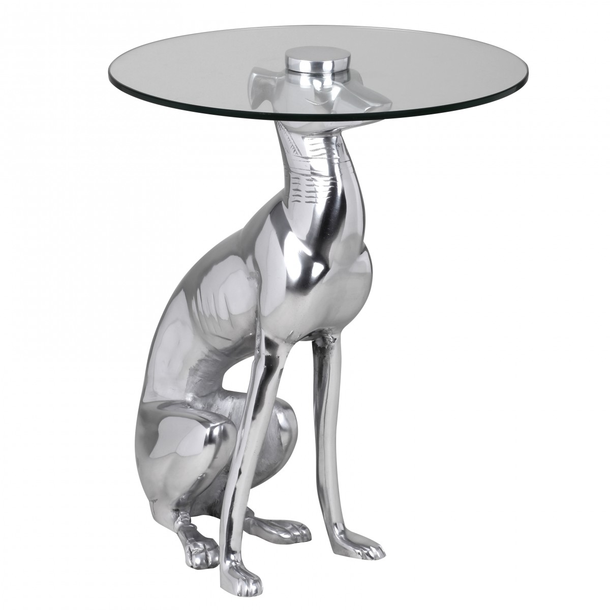 Design Stolik pomocniczy Pies z aluminium | Kolor srebrny | Wymiary 50x40x40 cm