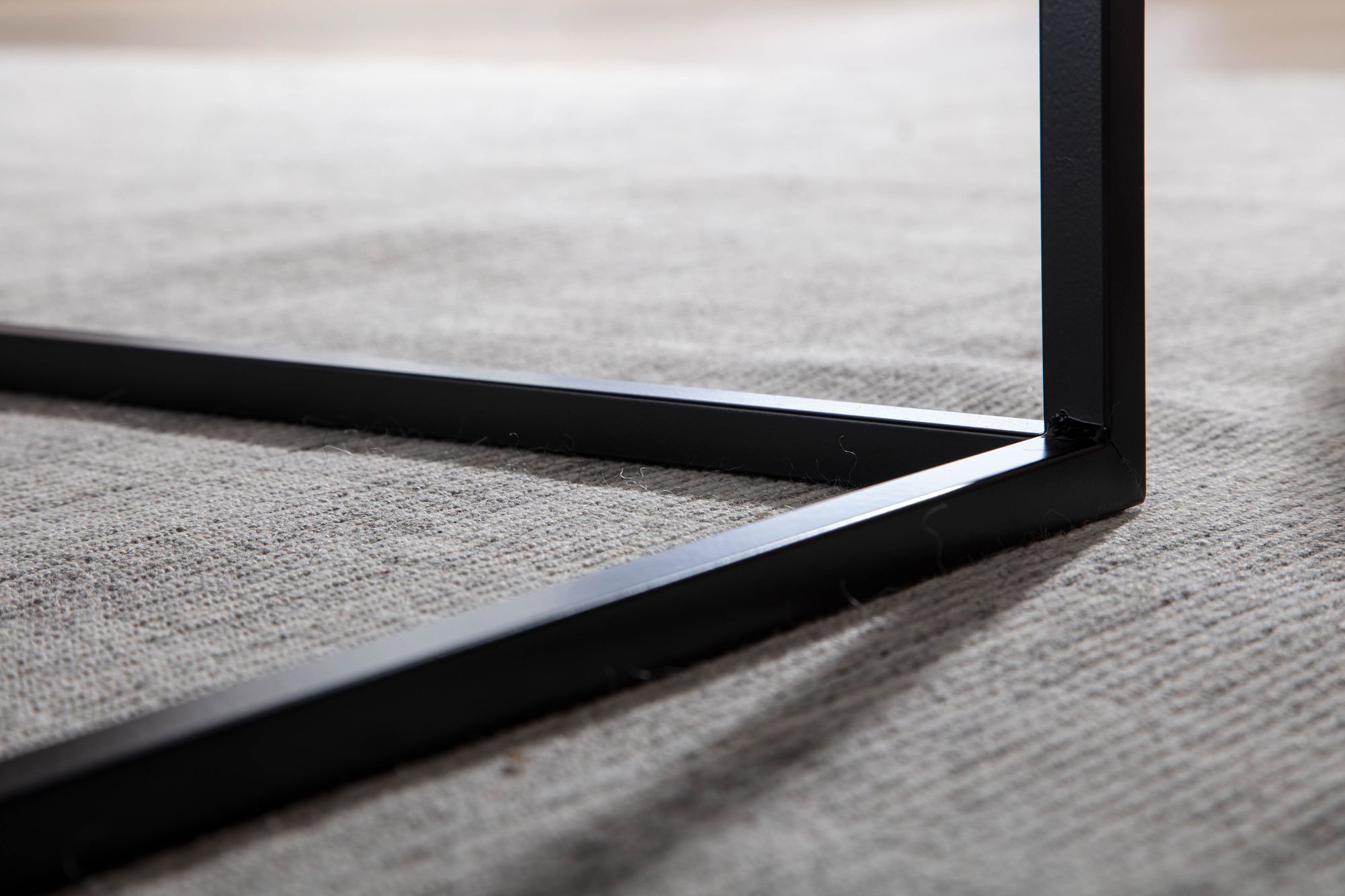 Postaw na styl industrialny z tym czarnym kwadratowym stolikiem kawowym z lakierowanej stali. Jego wytrzymałość i nowoczesny design sprawiają, że jest idealny do codziennego użytku w salonie.