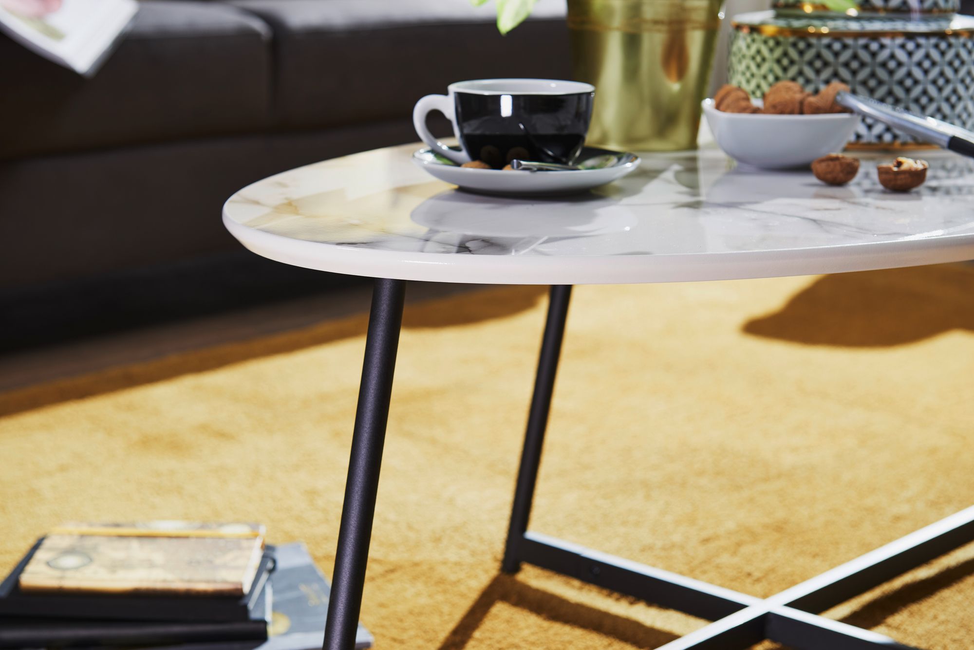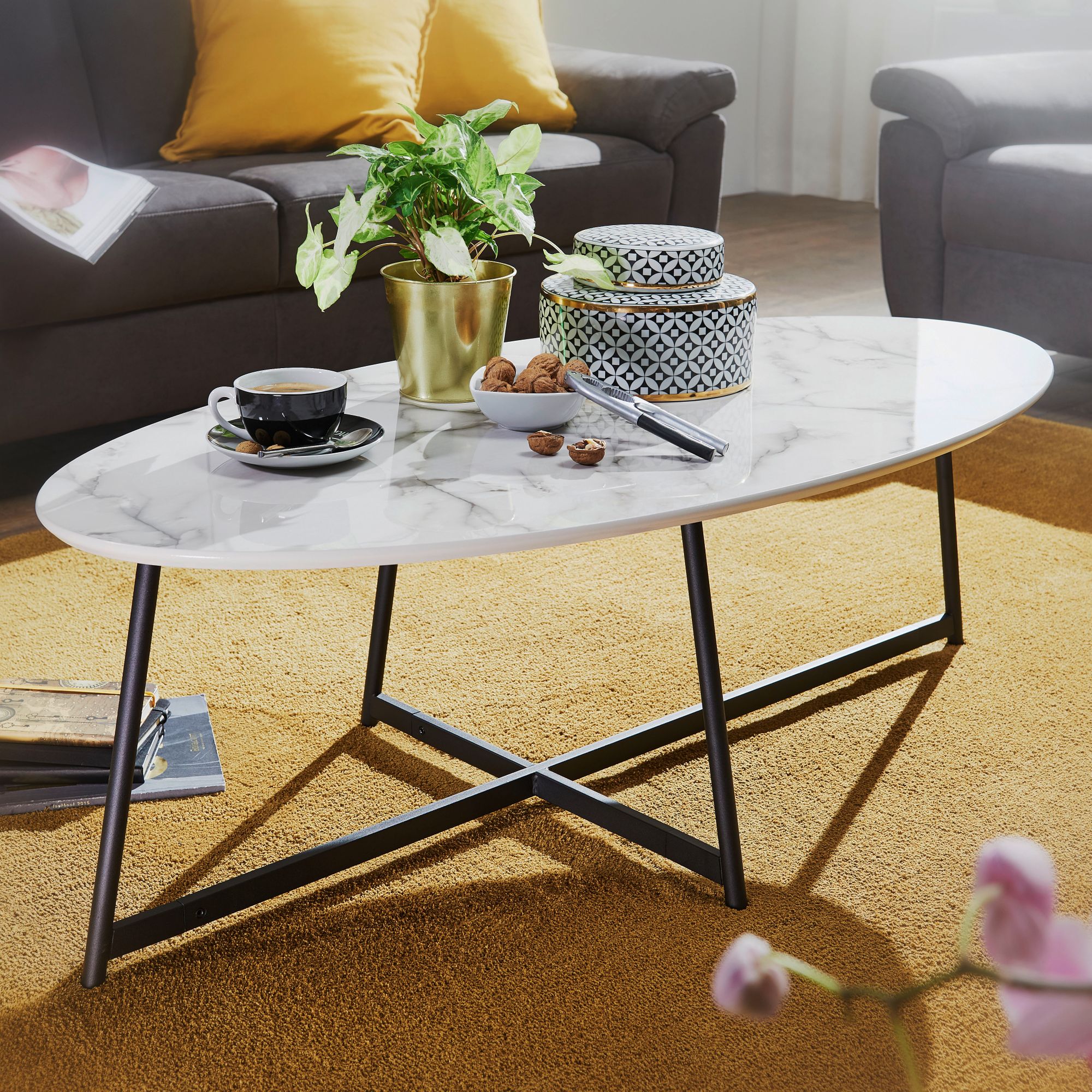 - Owalny stolik kawowy w marmurowym wyglądzie