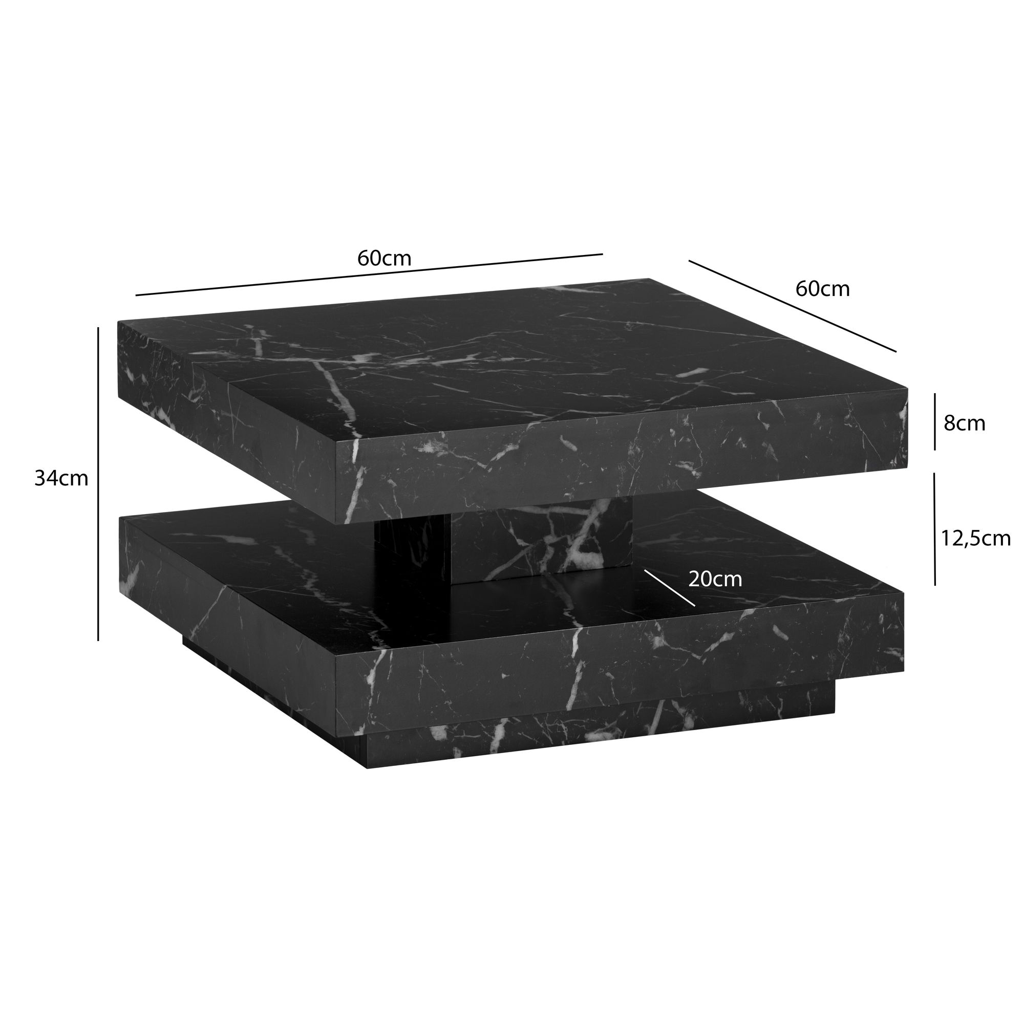 Informacje dot. produktu "Kwadratowy stolik kawowy z foliowanego MDF | Czarny efekt marmuru | 60x60x34 cm"