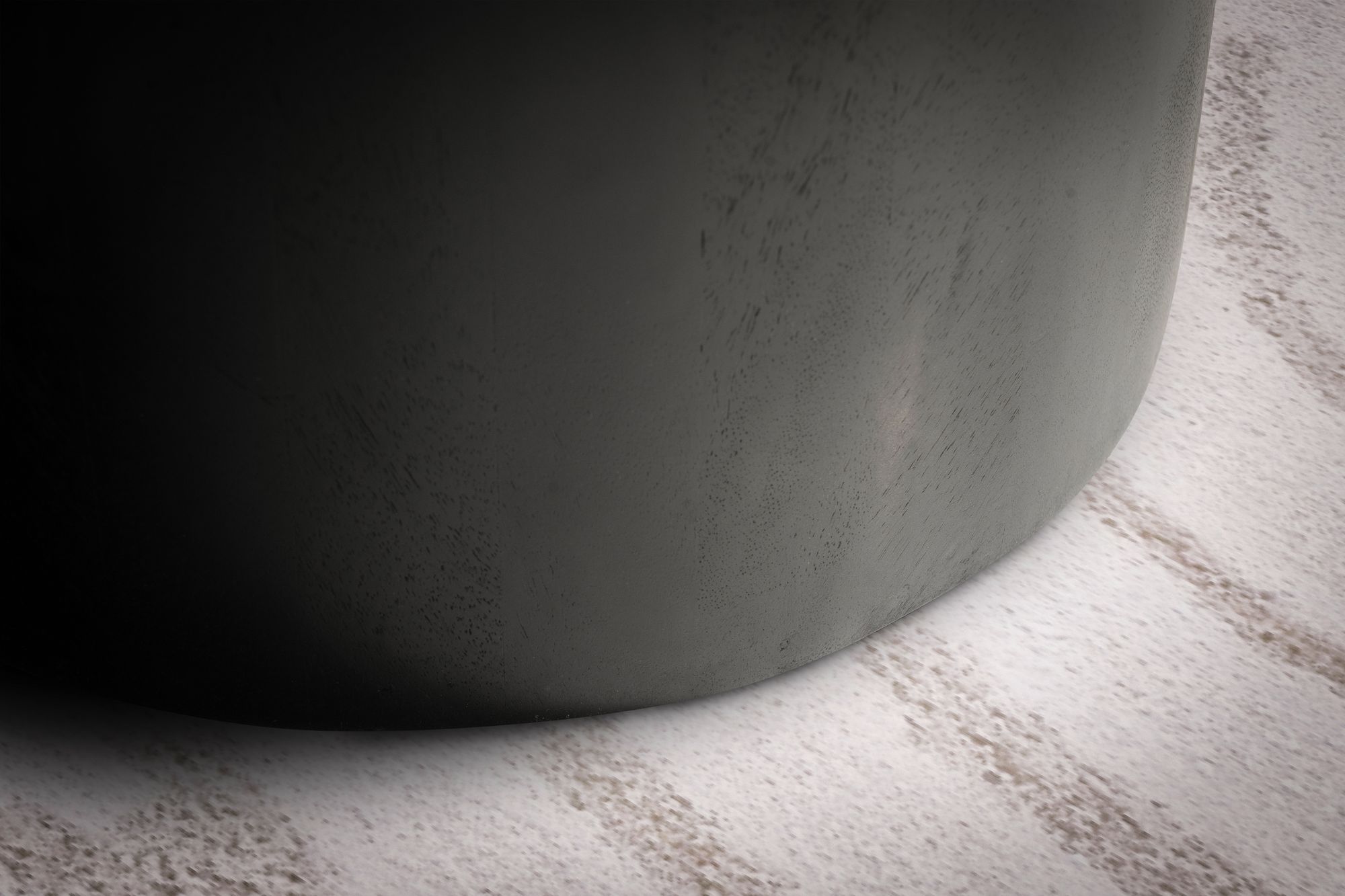 Informacje dot. produktu "Okrągły czarny stolik kawowy z litego drewna mango | 60x60x40 cm | Nowoczesny design z podstawą bębnową i podniesioną krawędzią"