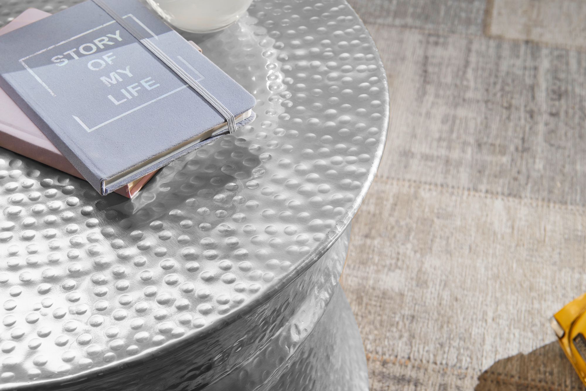Informacje dot. produktu "Srebrny stolik kawowy z aluminium | 62x41x62 cm | Okrągły orientalny design"