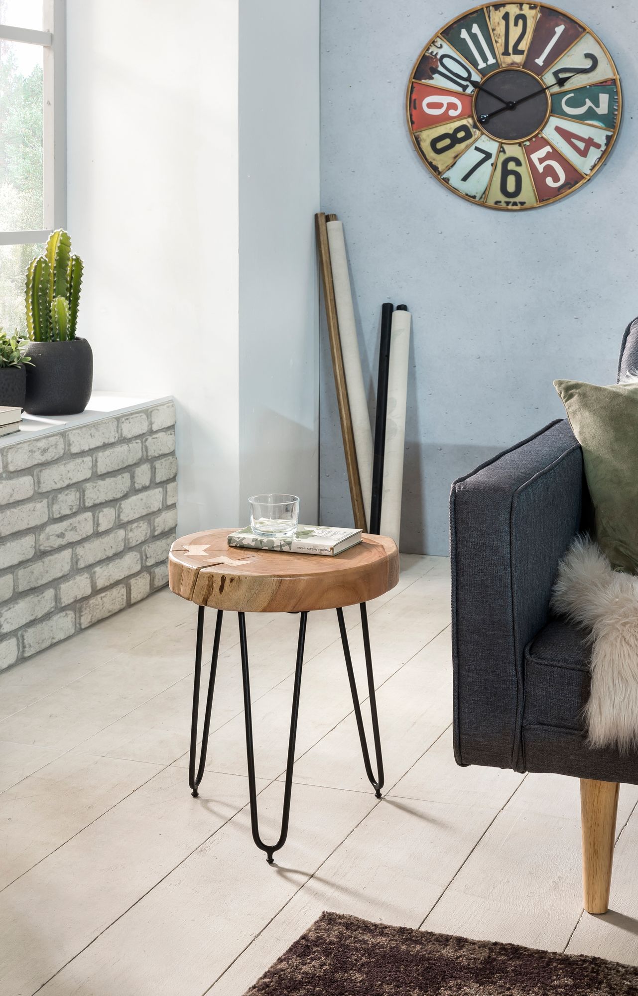 Informacje dot. produktu "Stolik boczny BAGLI lite drewno akacjowe blat 30x30 cm krawędź naturalna czarne nogi | Wymiary 41x30x30 cm"