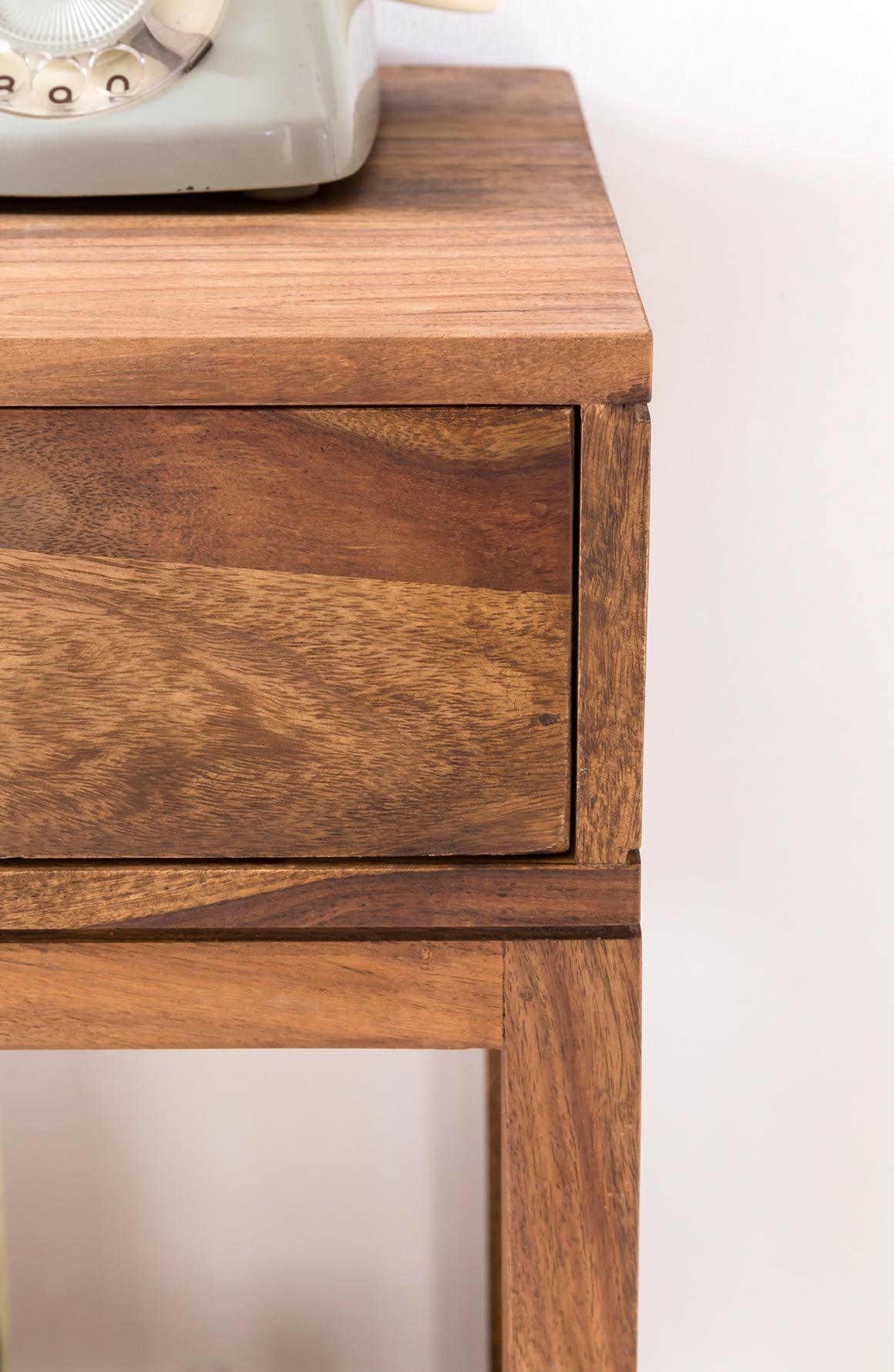 Stolik boczny MUMBAI Lite drewno Sheesham z szufladą | Kolor Sheesham z bezbarwnym lakierem | Wymiary 90x35x35 cm