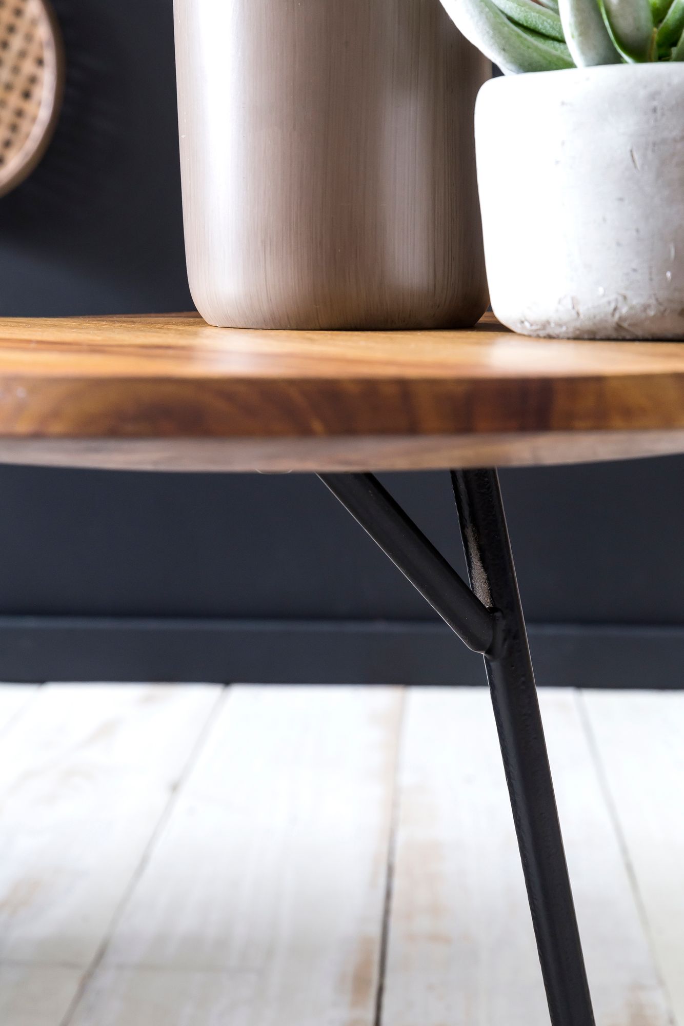 - Kompozycja: blat z litego drewna Sheesham, metalowe nogi