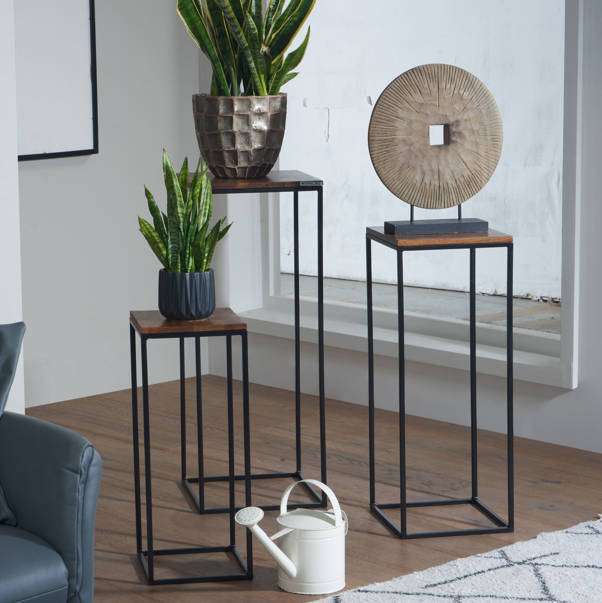 Stolik boczny, zestaw 3 stolików z litego drewna sheesham / metalu kwadratowego