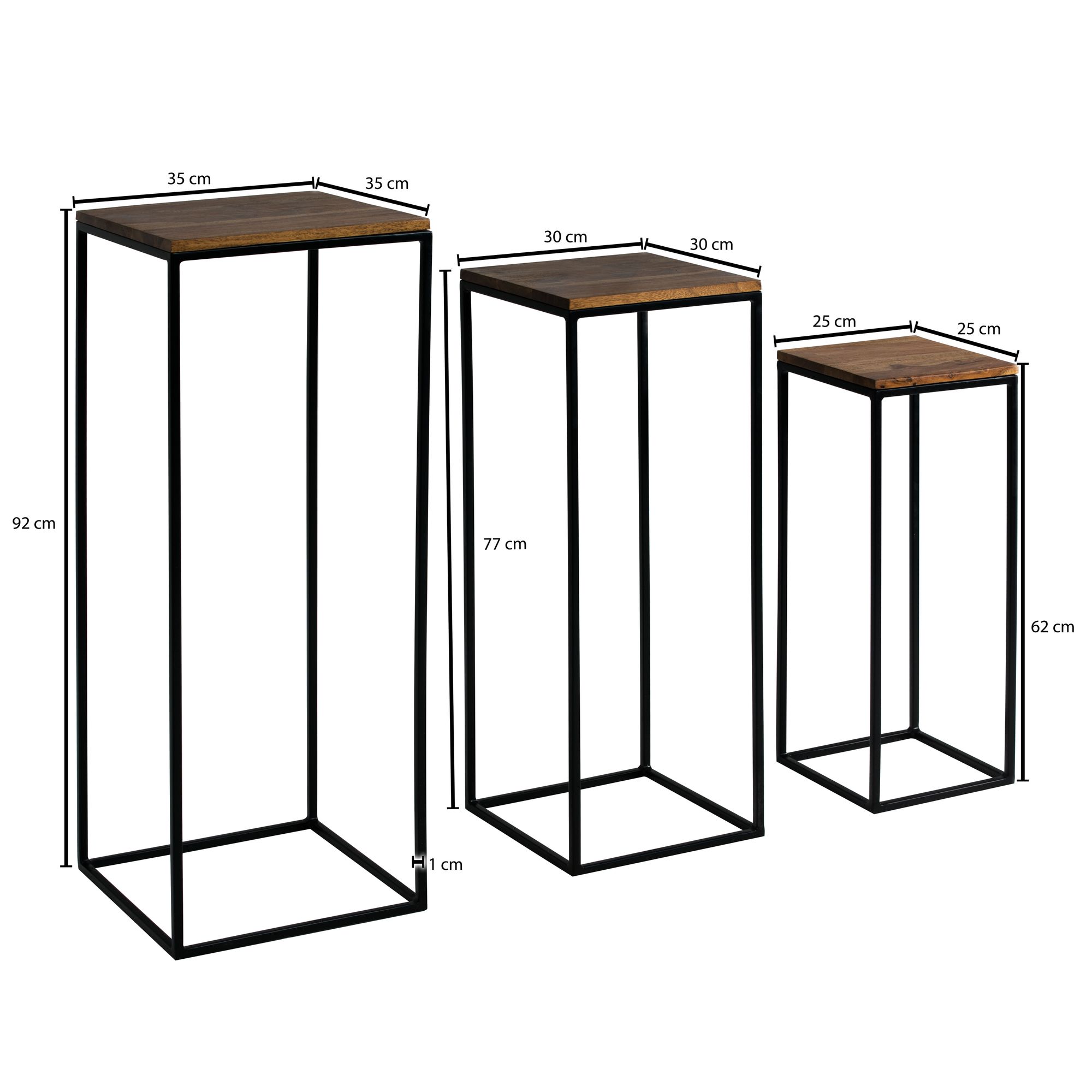 Informacje dot. produktu "Stolik boczny, zestaw 3 stolików z litego drewna sheesham / metalu kwadratowego"
