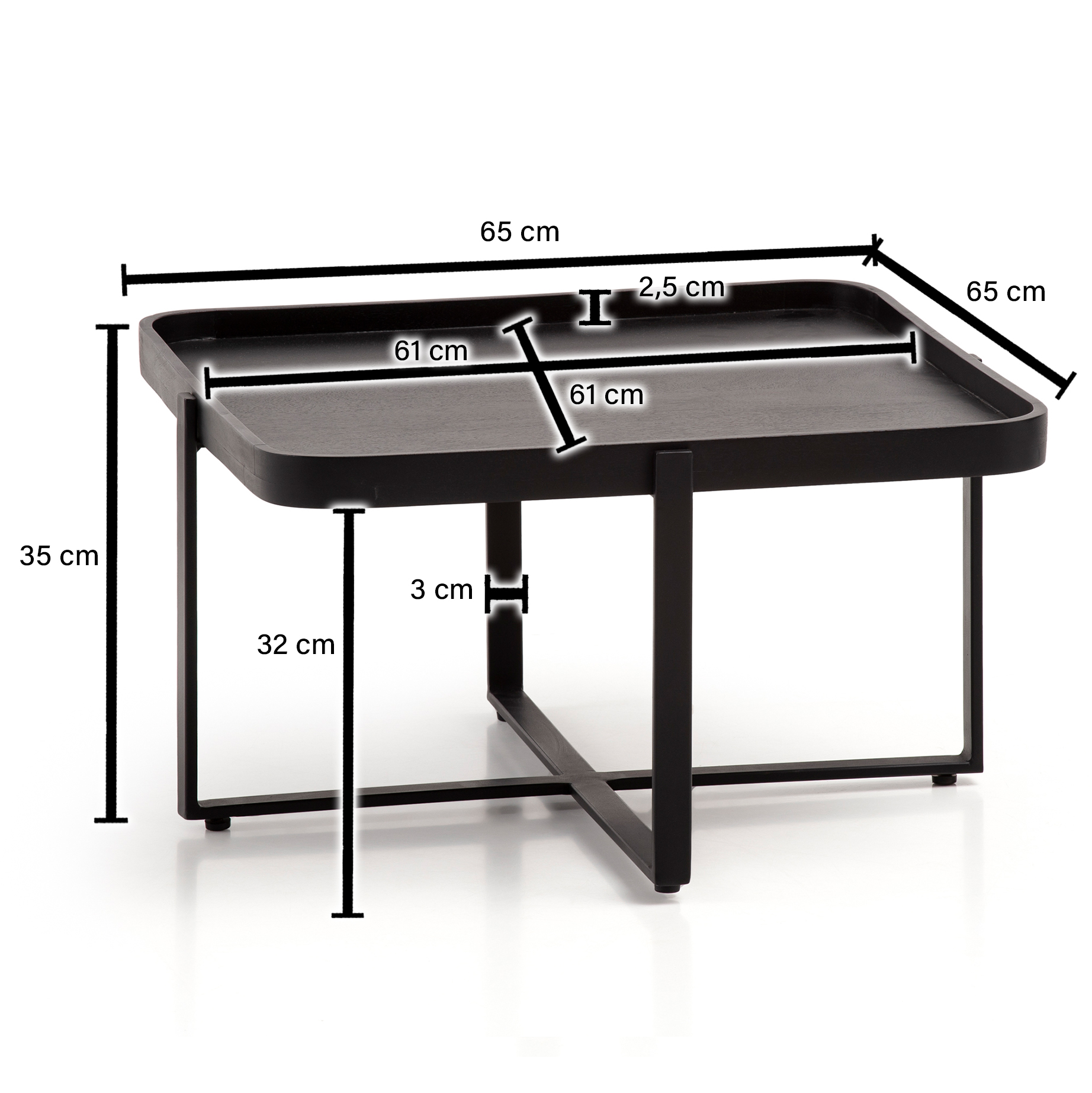Informacje dot. produktu "Stolik kawowy 65x65x35 cm mango lite drewno / metal czarna sofa kwadratowy stolik"