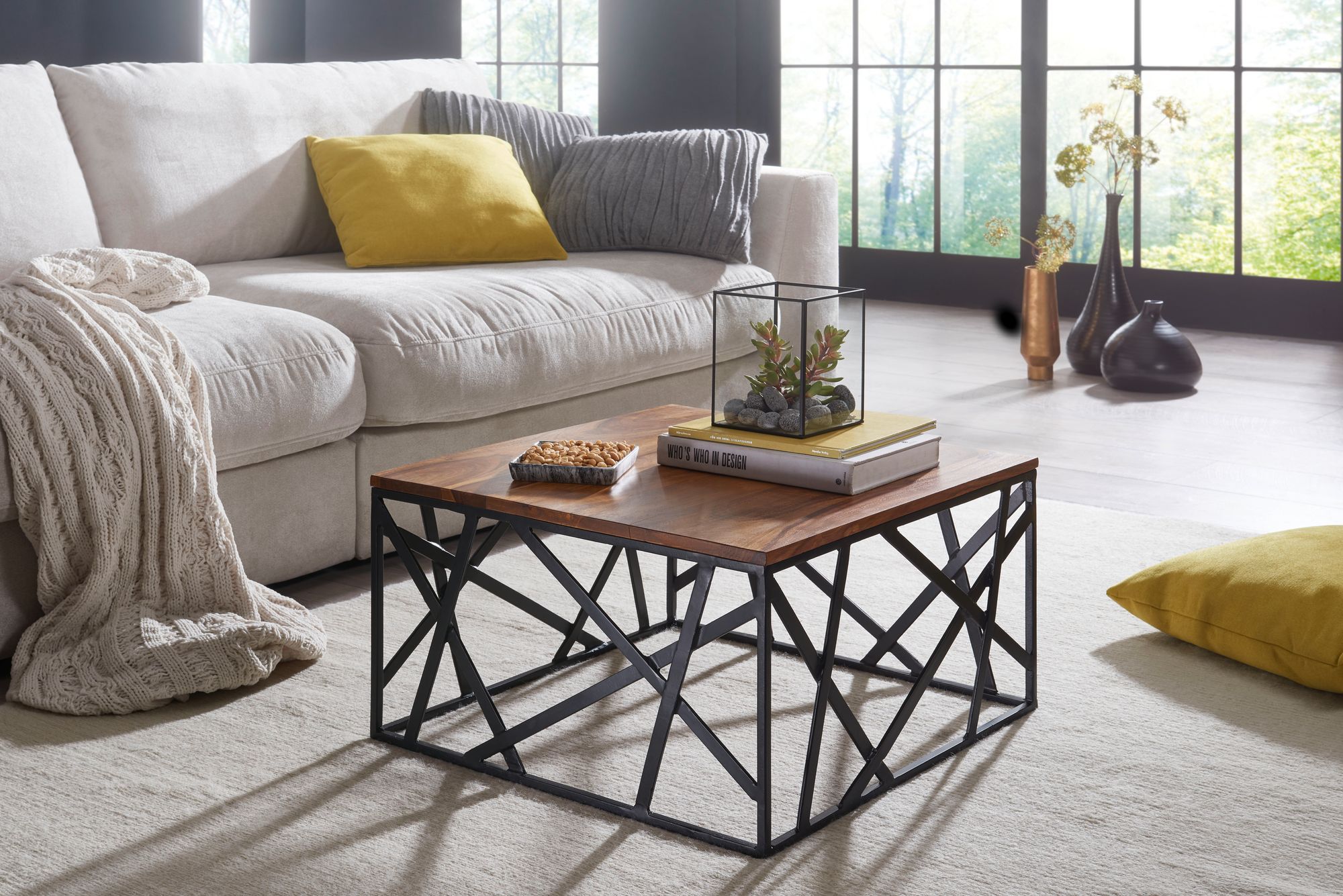 Poznaj stolik kawowy BAKAL o autentycznym industrialnym designie, wykonany z litego drewna Sheesham i matowej czarnej ramy metalowej. Kwadratowa powierzchnia 60x60 cm zapewnia funkcjonalne miejsce na przedmioty, a metalowe nogi gwarantują doskonałą stabilność.