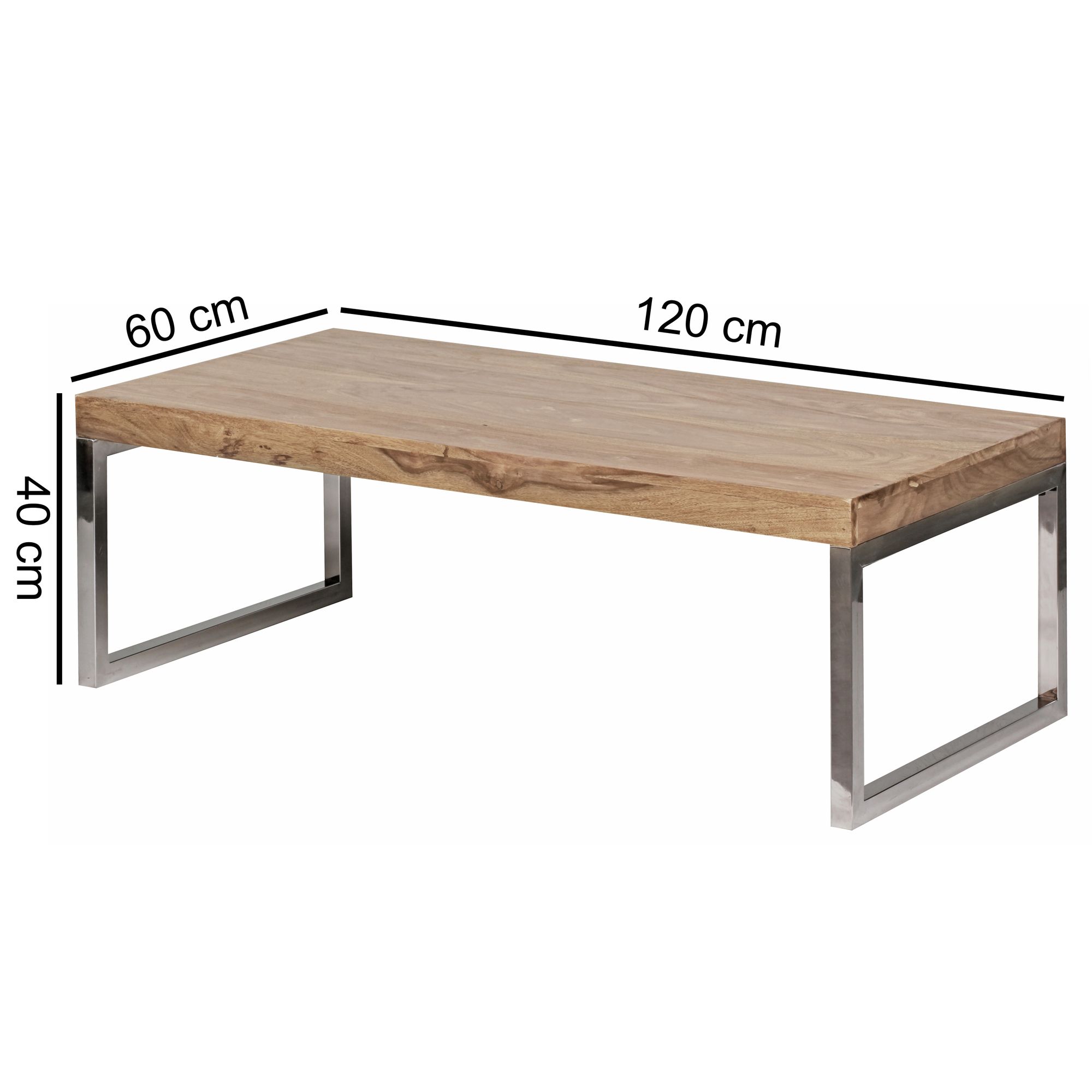 Stolik kawowy GUNA z litego drewna akacjowego to połączenie stylu i funkcjonalności. Wymiary 120 x 60 x 40 cm zapewniają dużo miejsca do codziennego użytku w salonie.