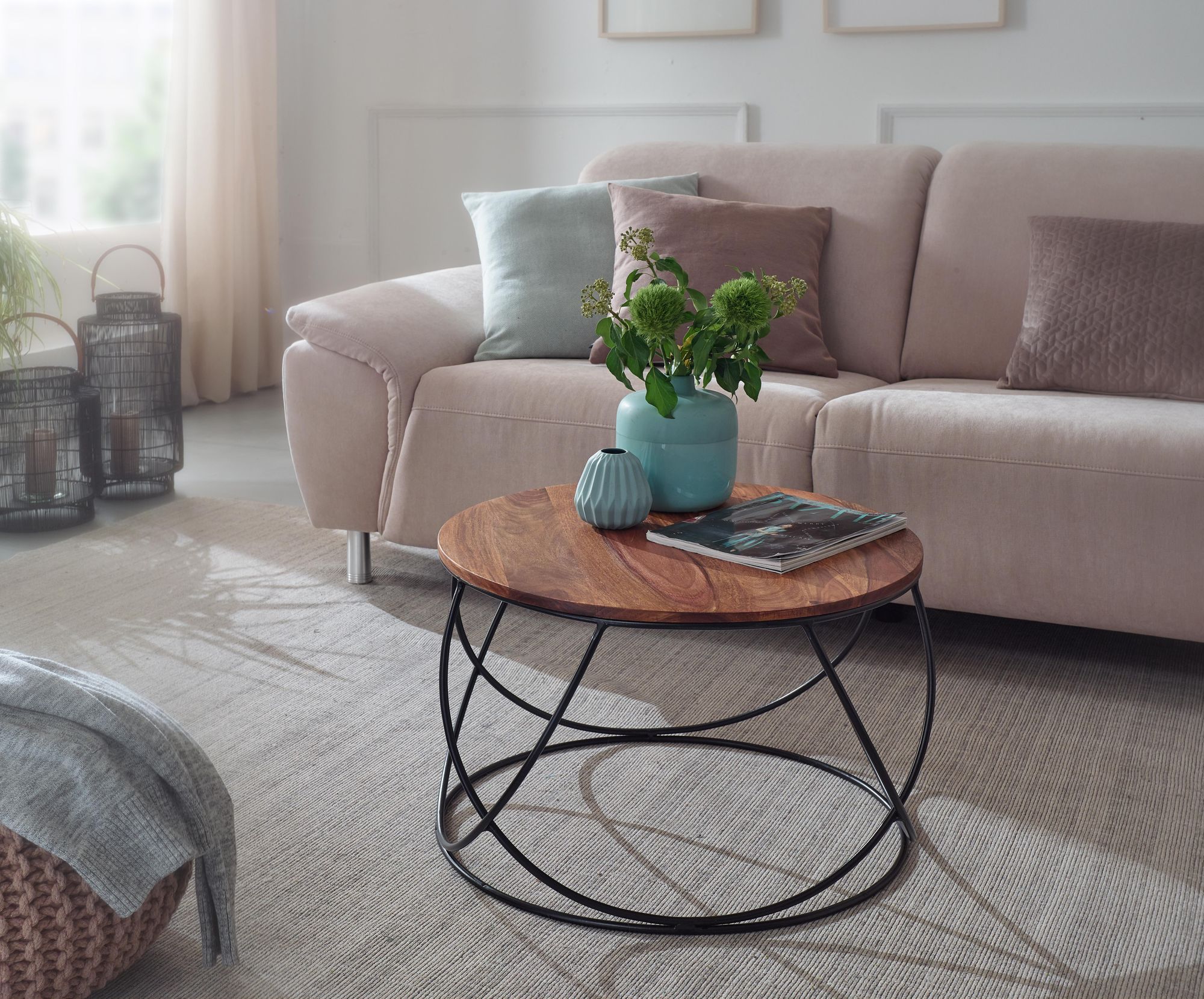 Dodaj industrialnego uroku do swojego wnętrza dzięki temu okrągłemu stolikowi kawowemu z litego drewna Sheesham o wymiarach 60x40x60 cm. Okrągły blat łączy w sobie estetykę i funkcjonalność do codziennego użytku.
