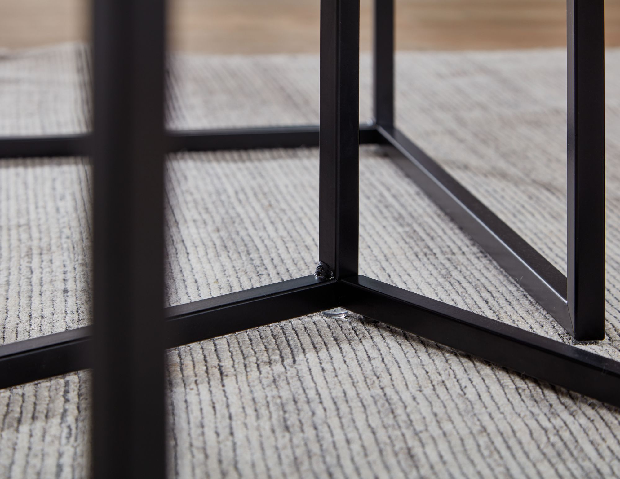 Dodaj modularność i przemysłowy styl do swojej przestrzeni dzięki zestawowi 2 czarnych stolików bocznych z lakierowanej stali. Idealne do optymalizacji przestrzeni w salonie, oferują elastyczne zastosowanie dzięki różnym rozmiarom i konstrukcji umożliwiającej wsunięcie jednego pod drugi.
