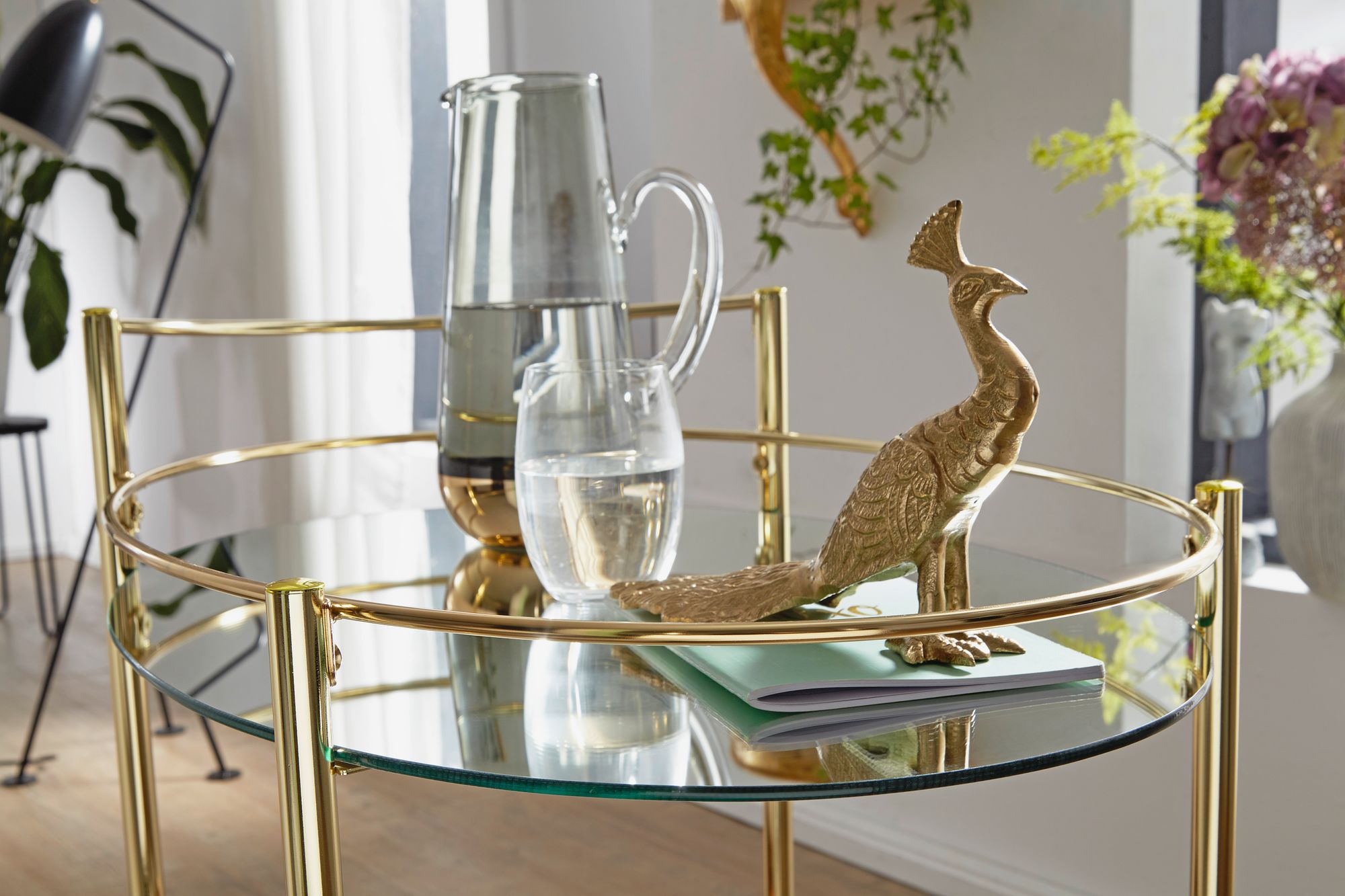 Informacje dot. produktu "Złoty wózek do serwowania | Biały szklany blat | 67x79x46 cm"