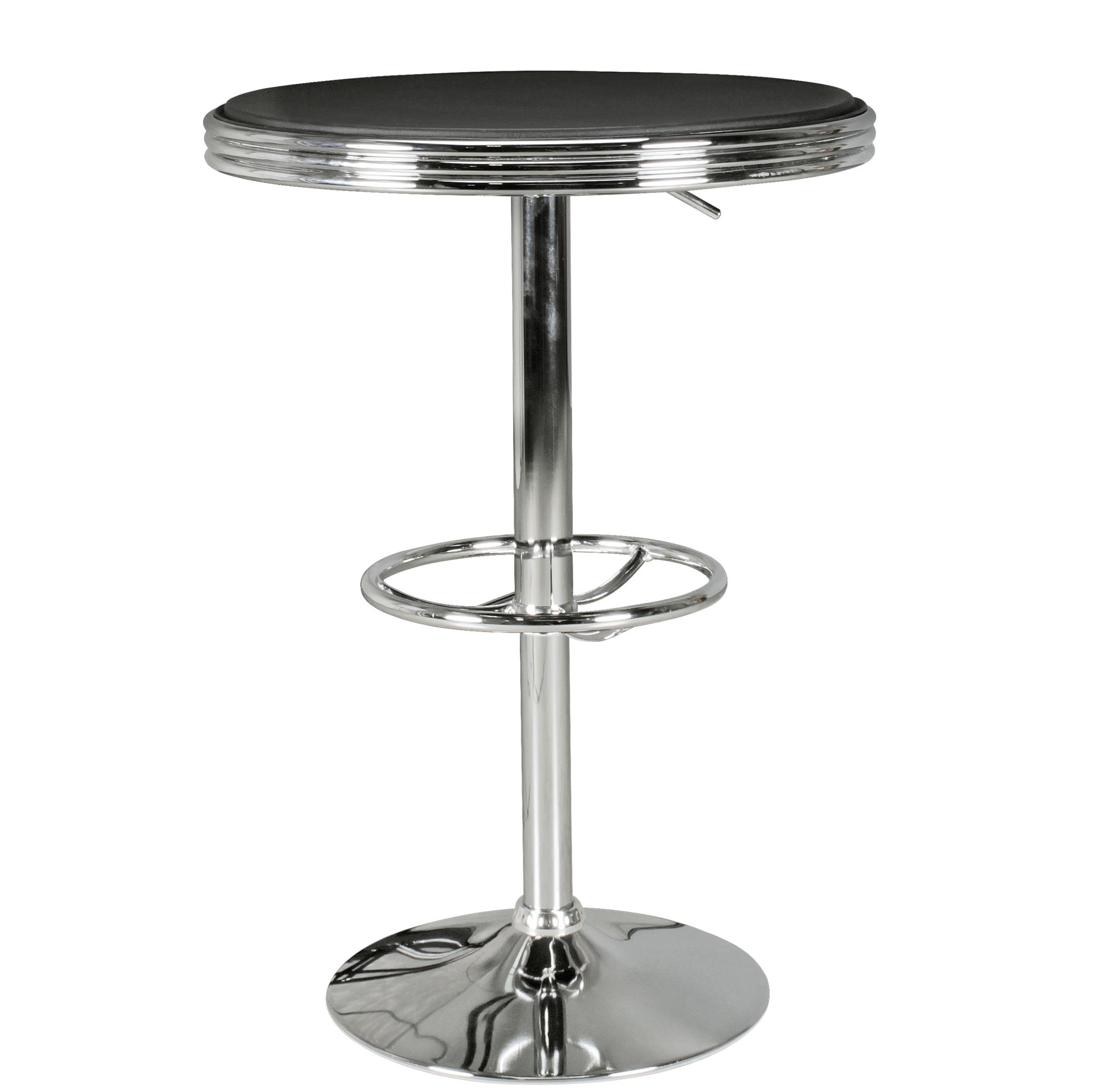 Informacje dot. produktu "Okrągły stolik barowy American Diner Ø 60 cm aluminium czarna sztuczna skóra | Regulowana wysokość 68-92 cm | Podstawa chromowany aluminium"