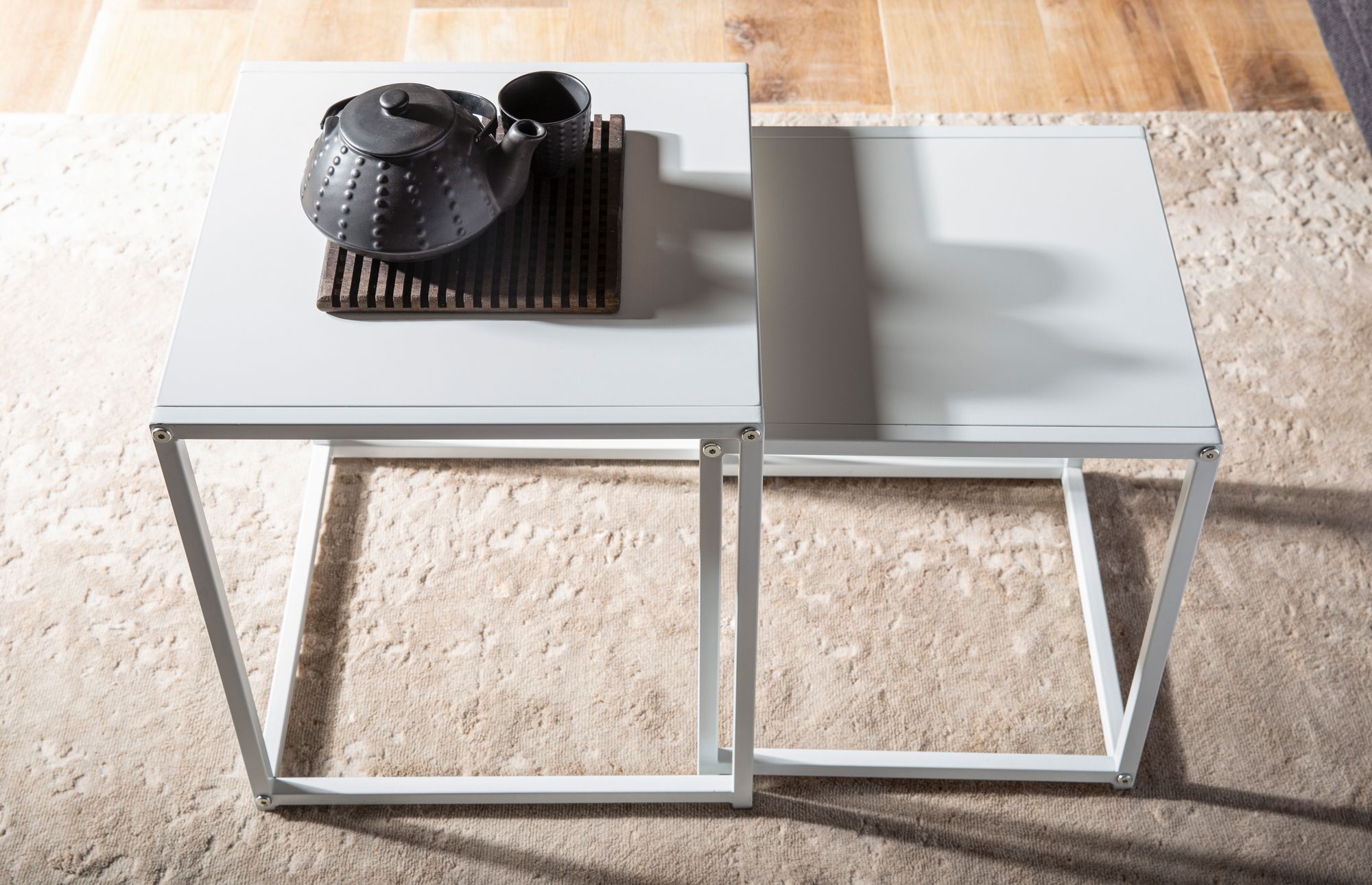 Zestaw 2 stolików pomocniczych biały metal 40x40x45 & 35x35x40 cm | Styl industrialny
