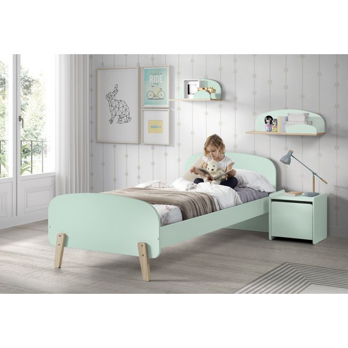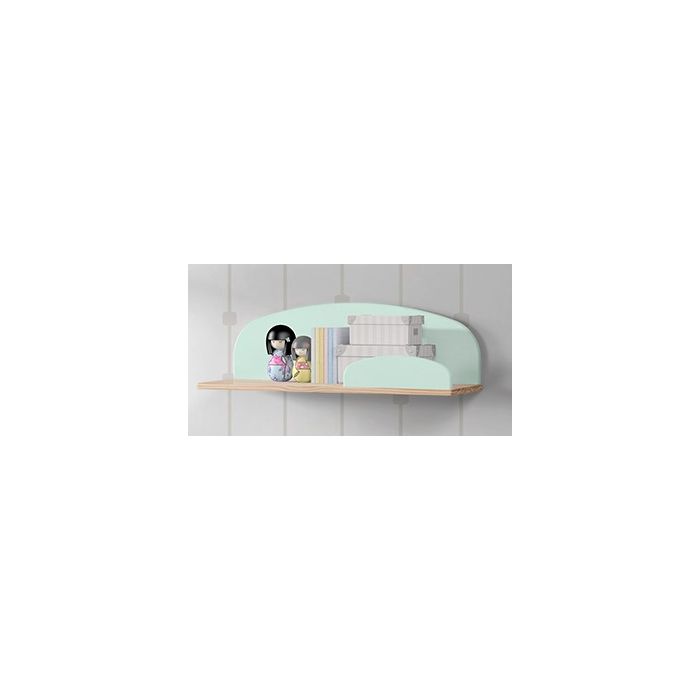 This KIDDY wall shelf in mint green is made out of lacquered MDF and solid pine details. The shelf is 65 cm long.