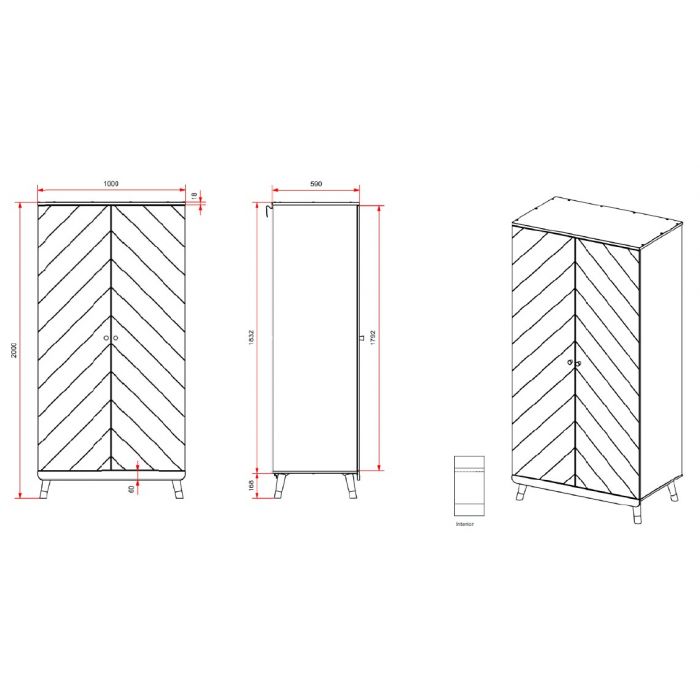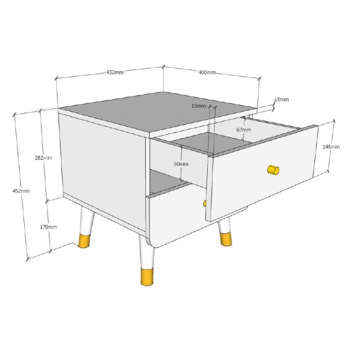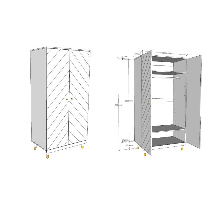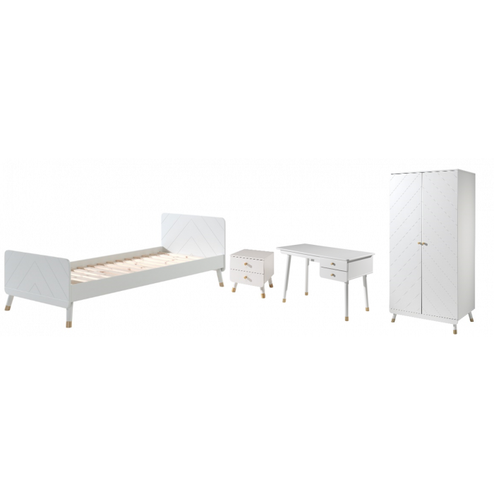 This single bed from BILLY is made of high quality MDF and is lacquered in white. The bed is decorated on the headboard and footboard with a graphic pattern, which gives this bed a unique look. The gold-colored legs emphasize the retro character. The BILLY nightstand is the perfect finishing touch for any bedroom! With 1 hanging rod and 2 shelves, the BILLY closet offers plenty of storage space for clothes, shoes and other items. The BILLY desk provides plenty of space to do homework. Thanks to the two drawers, writing and crafting supplies also get a place. This combination will fit perfectly in a romantic or modern interior.