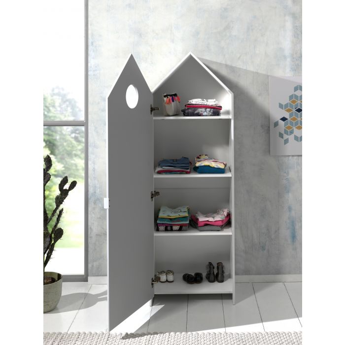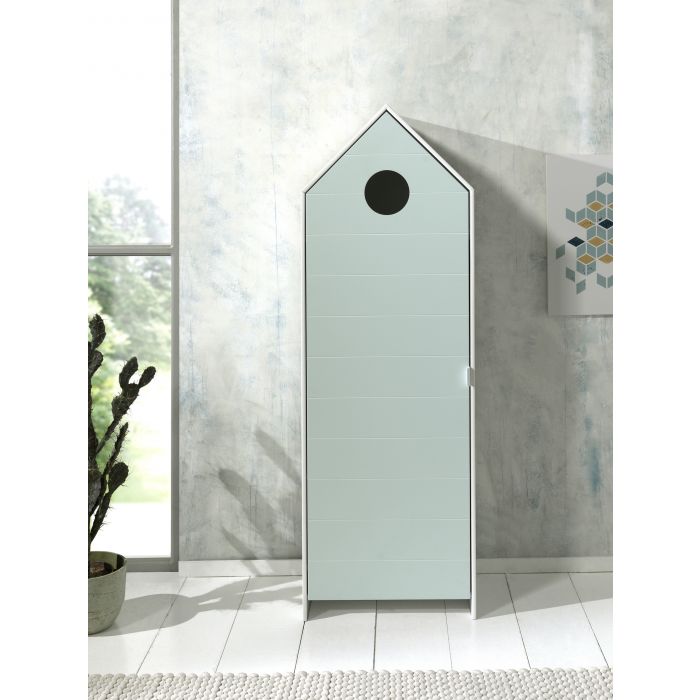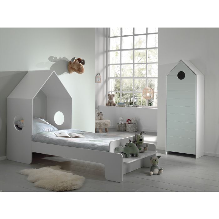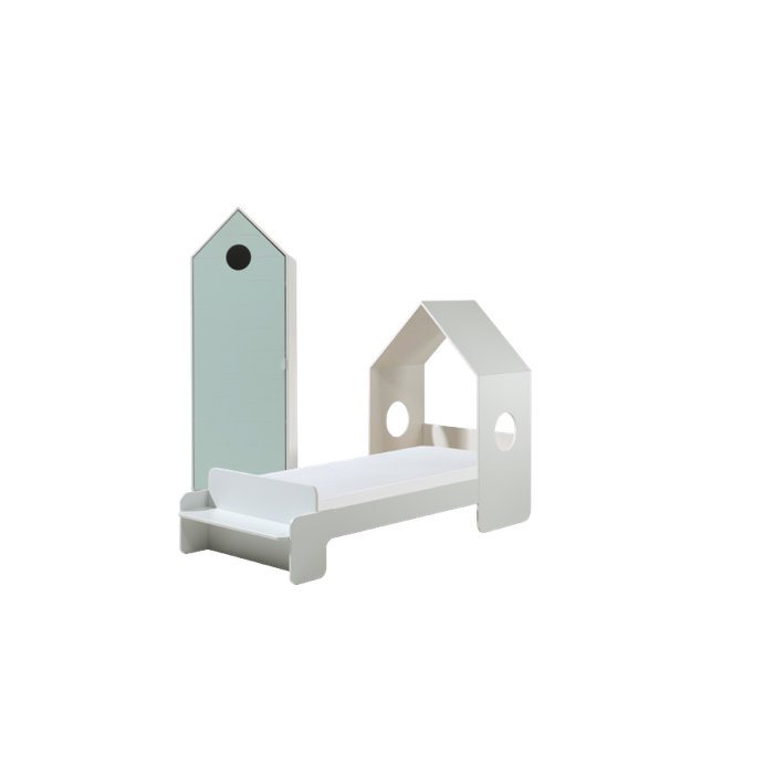 The CASAMI housebed (90x200) with a litte roof and cut out windows suits in every interior. The little bench at the and of the bed is perfect to sit or to display books and toys. The beach house cupboard with a mintgreen door has 3 shelves so there's plenty of storage space to keep your clothes folded our to display your books and toys.