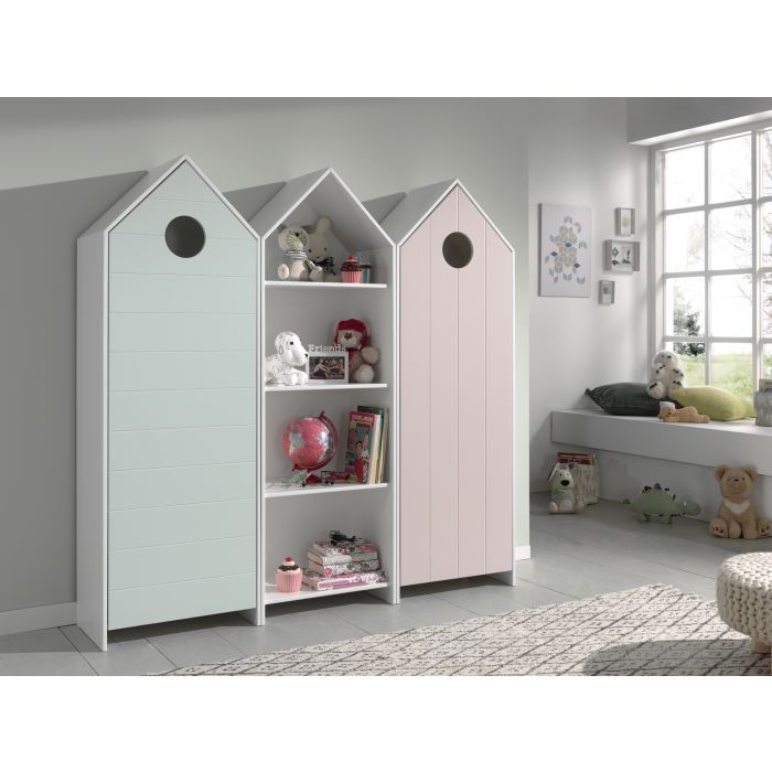 The CASAMI beach house cupboards will add colour to your kids bedroom. They are also compatible with other items from our collections. The closets with doors in pastel pink and mint green have 3 shelves and 1 hanging rail. The open closet in white has also 3 shelves. There's plenty of storage space to keep your clothes folded our to display your books and toys.