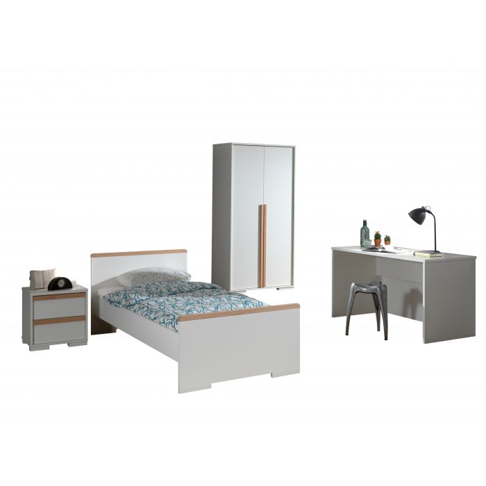 The LONDON bed (90x200) in white has a Scandinavian look in combination with the solid pine. The nightstand in white has 2 drawers with soft-close system. The 2 door wardrobe consist of 2 doors with 2 shelves and 1 hanging rail. The desk has a spacious worktop. The perfect stylish addition for every children's or young adult's room.