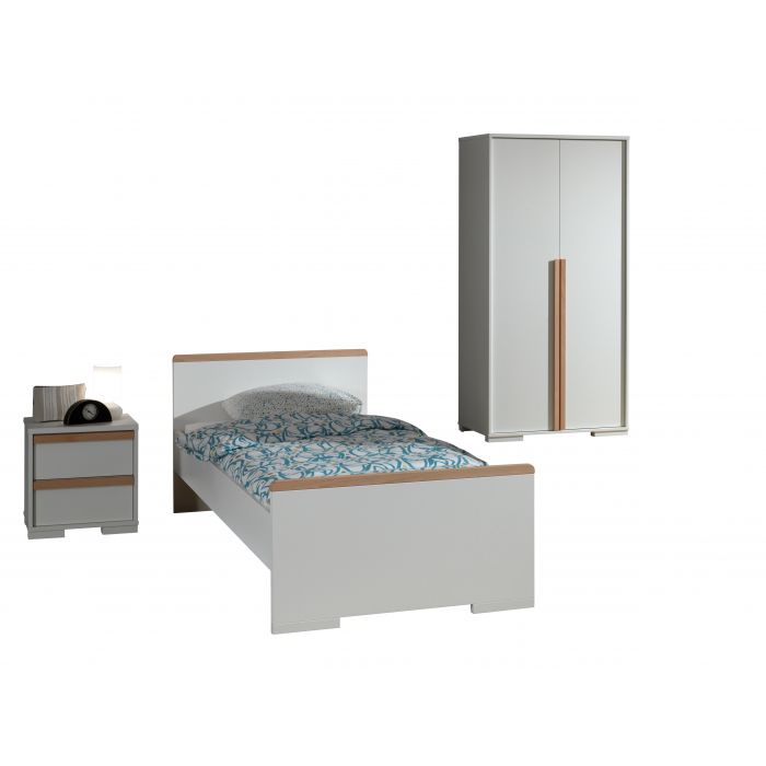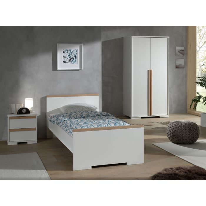The LONDON bed (90x200) in white has a Scandinavian look in combination with the solid pine. The nightstand in white has 2 drawers with soft-close system. The 2 door wardrobe consist of 2 doors with 2 shelves and 1 hanging rail. The perfect stylish addition for every children's or young adult's room.