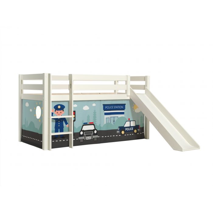 This PINO combination consists of the white mid sleeper with slide and POLICE curtain.