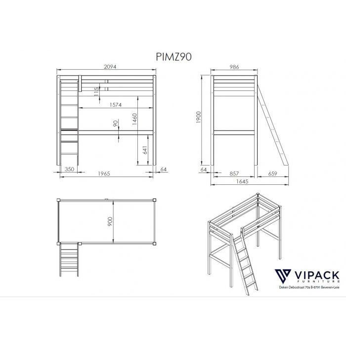 This PINO combination consists of the grey PINO mezzanine 90 x 200 cm
