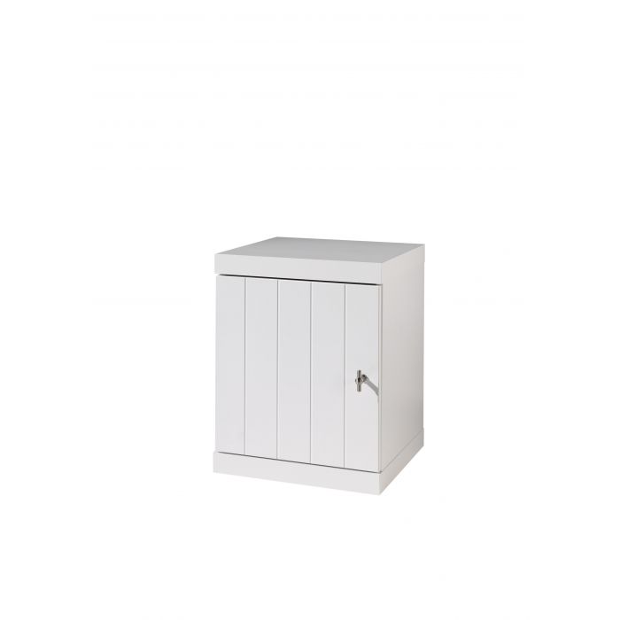 The ROBIN bed consists of white lacquered MDF. The slatted base is not included. The bed as well as the bedside table and 2-door wardrobe are finished with fine vertical grooves that create a warm rural feeling. The doors of the bedside table and 2-door wardrobe are equipped with a soft-close system.
