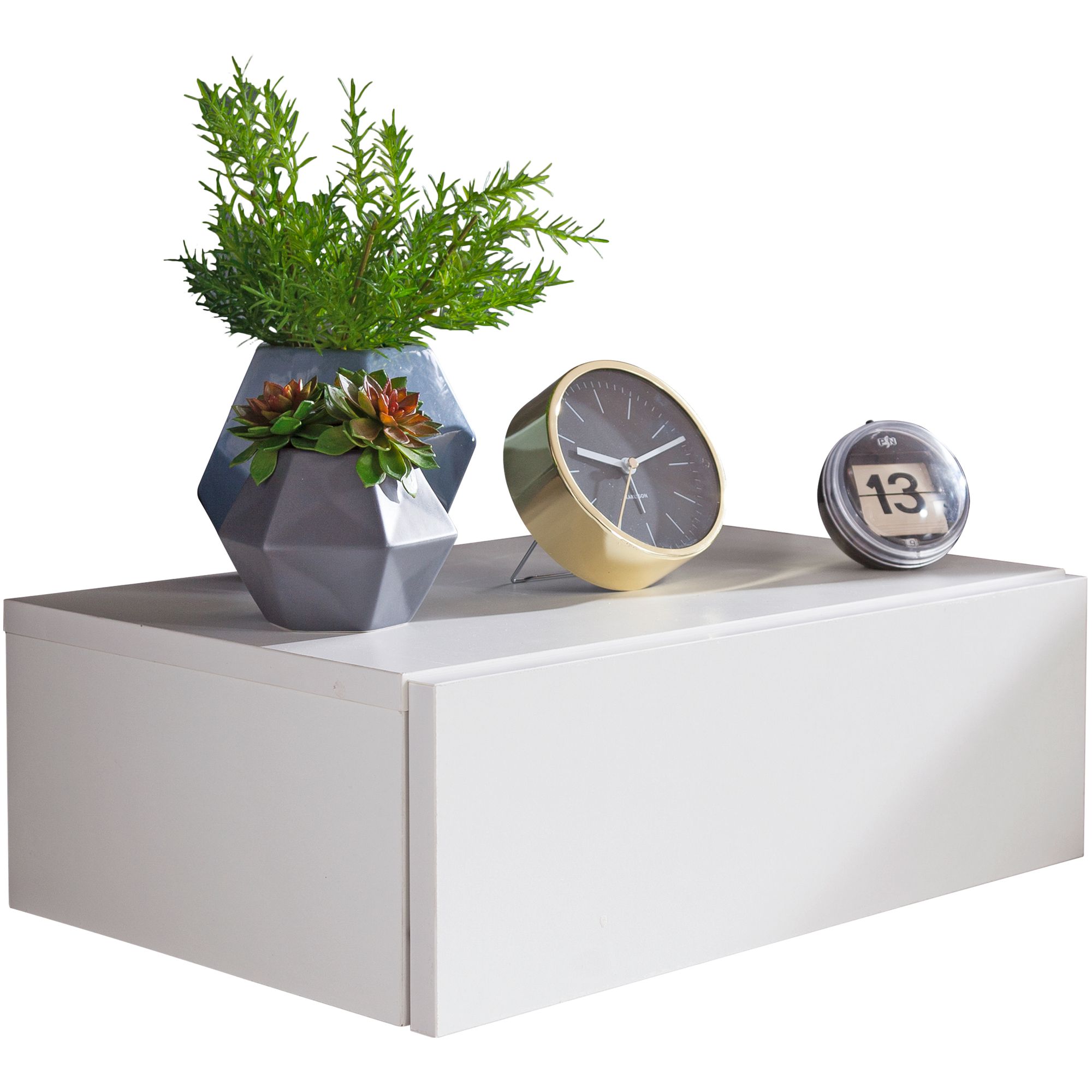 W zestawie: Konsola nocna bez ozdób. Elementy montażowe do ściany nie są dołączone.