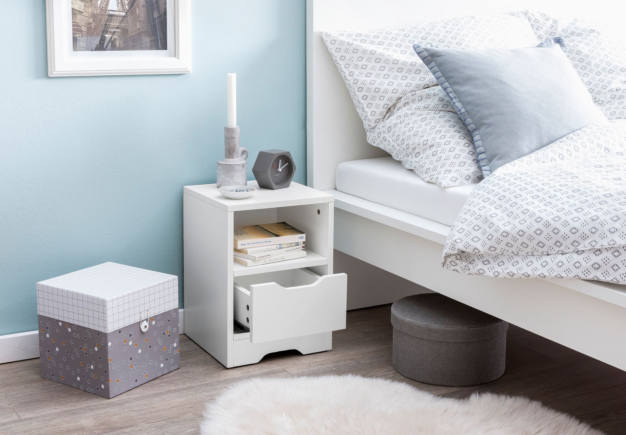 Informacje dot. produktu "Szafka nocna biały mat 31x43x31 cm | 1 szuflada i schowek | Nowoczesna szafka nocna"