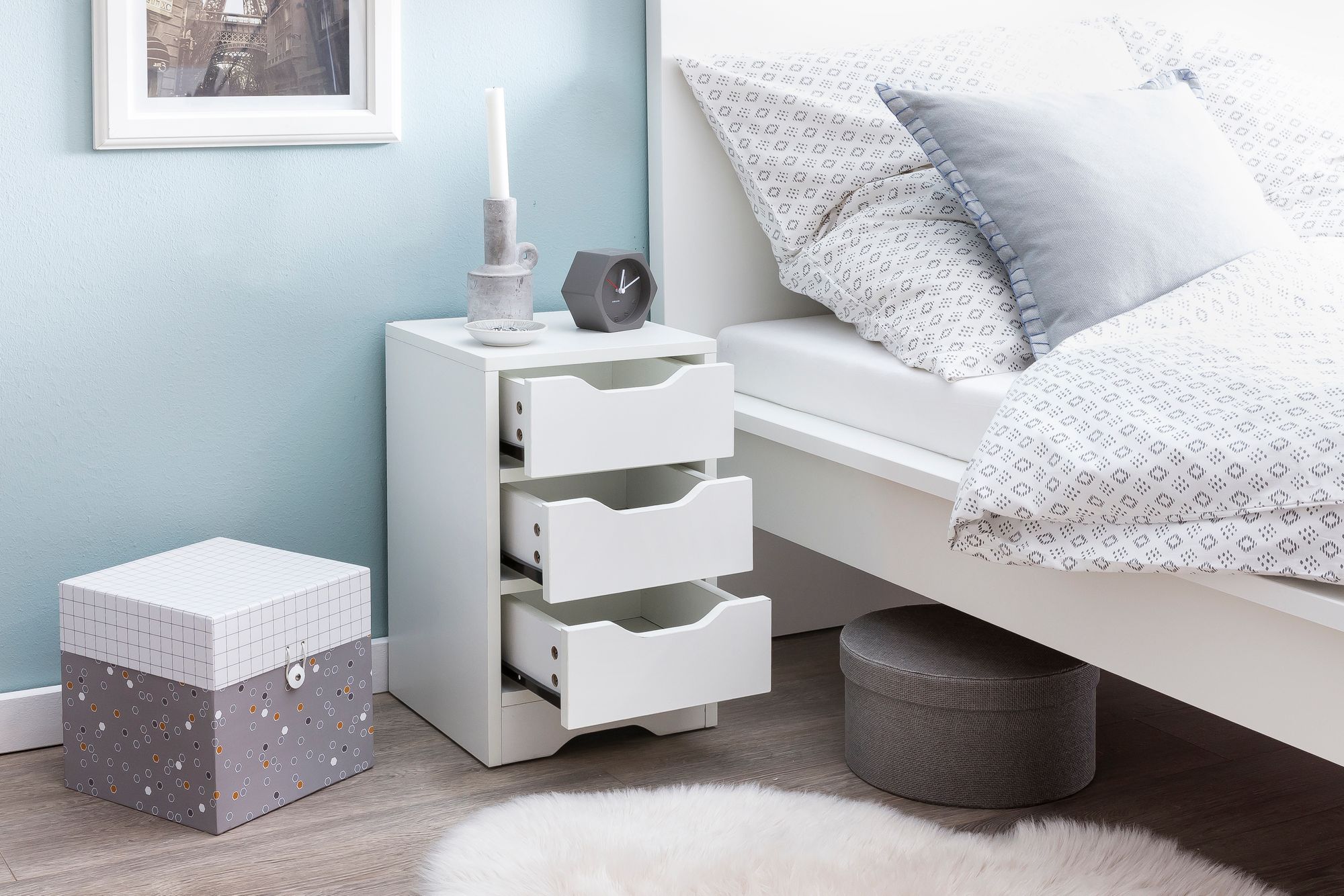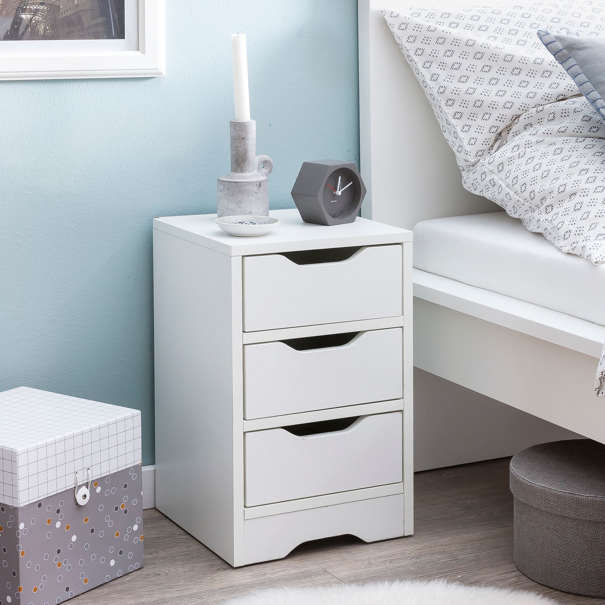 Szafka nocna biały mat 31x49x31 cm | 3 szuflady | Nowoczesna i funkcjonalna szafka nocna