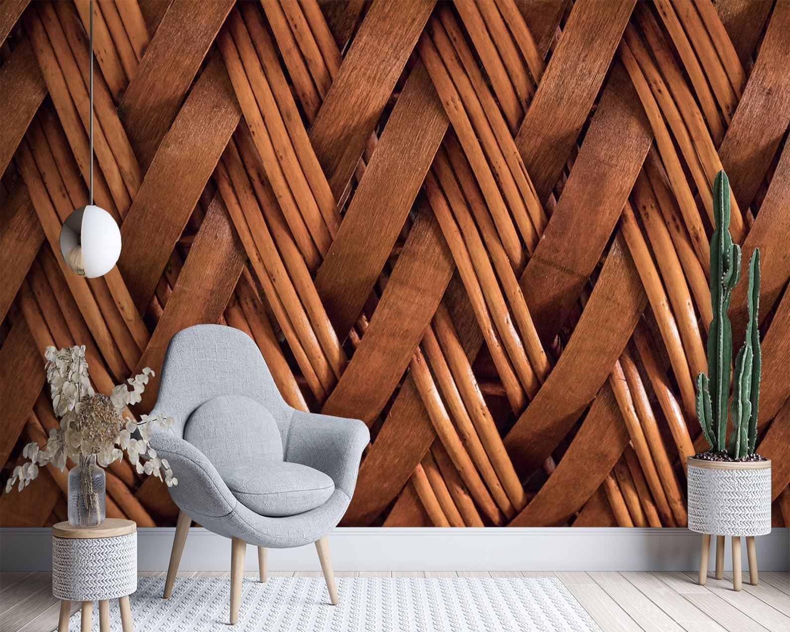 Informacje dot. produktu "Fototapeta do salonu z tkanym wiklinowym obrazem wykonanym z płótna"