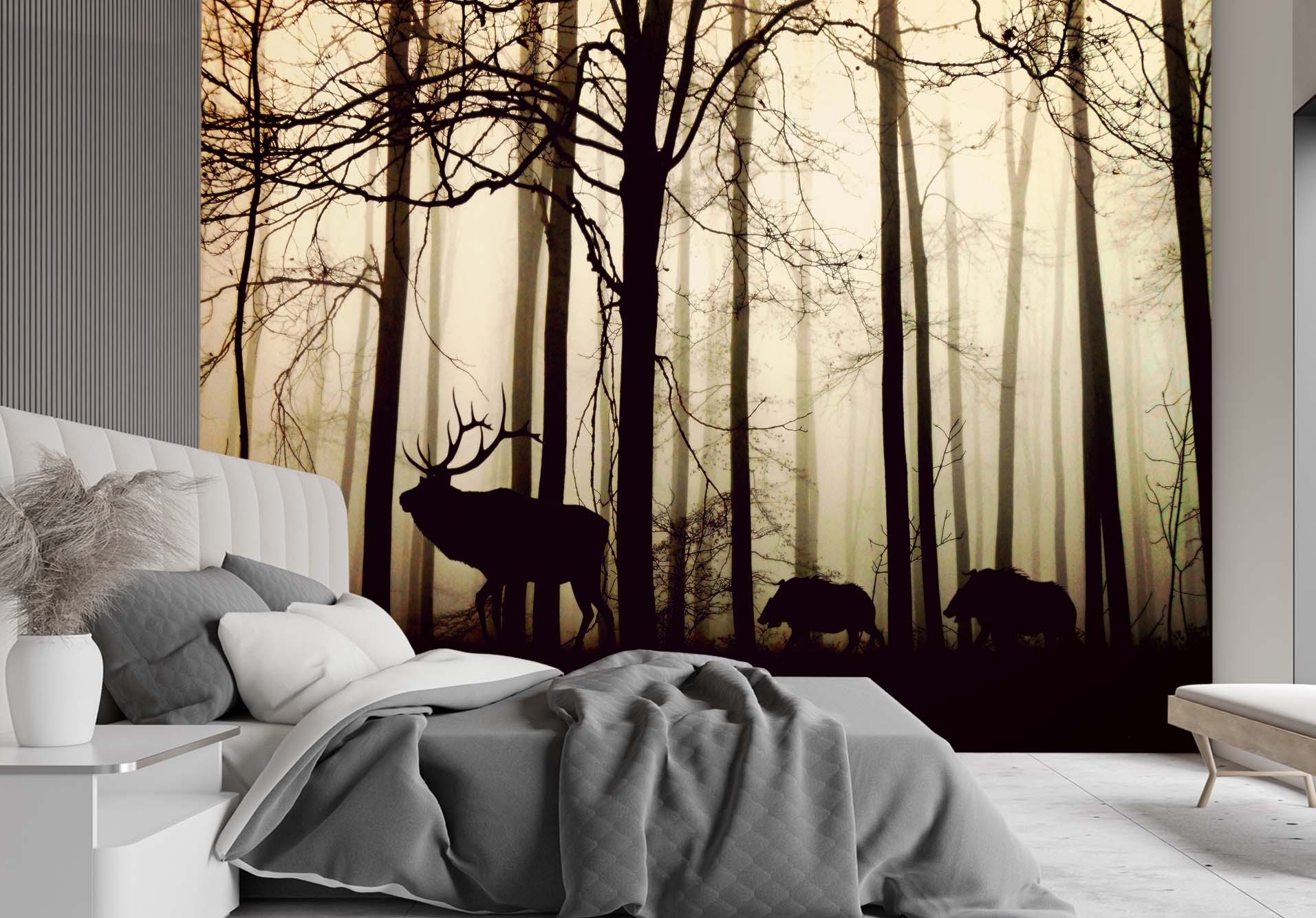 Prostokątna tapeta z wizerunkiem zwierząt leśnych wydrukowana na płótnie z brązowym wykończeniem