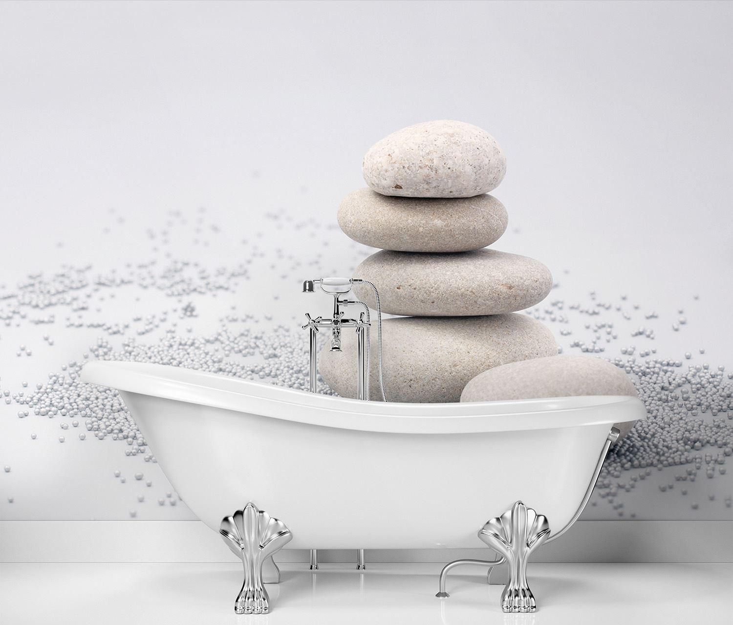 Informacje dot. produktu "Tapeta z białymi kamykami zen ułożonymi na szarym, gradientowym tle"